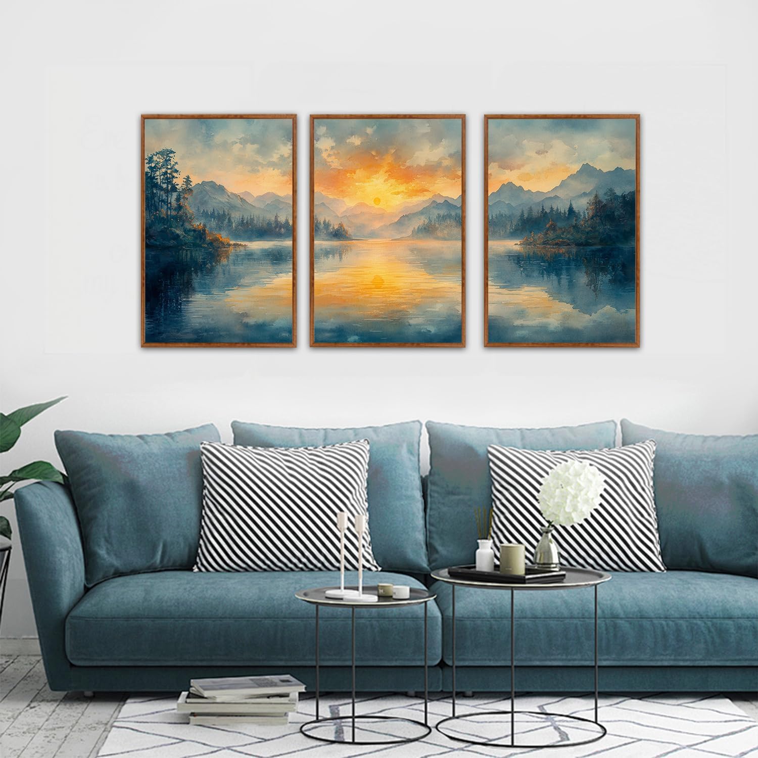 - [Blue Landscape Canvas Wall Art] Our set of sunset wall art paintings depicts the beautiful scenery of clothes,including elements such as lakes,forests and mountains.Hanging it in your indoor space will surely bring you a serene and peaceful atmosphere