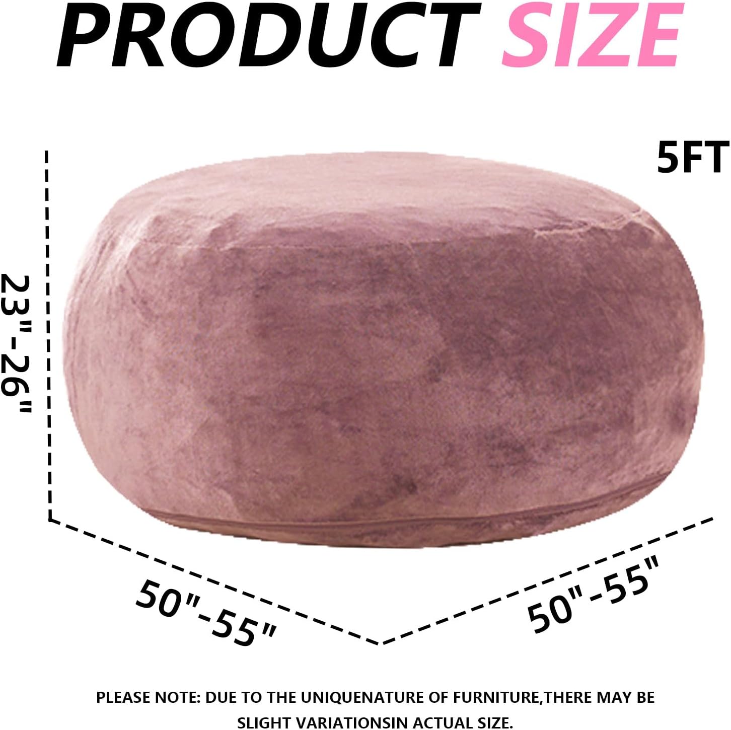 5FT,Big Bean Bag Chairs for Adults,Large beanbag with Filler Included,Memory Foam Material,Easy to Clean and Washable Corduroy Fabric,Suitable for Living Room and Bedroom (Pink, 5 Foot)