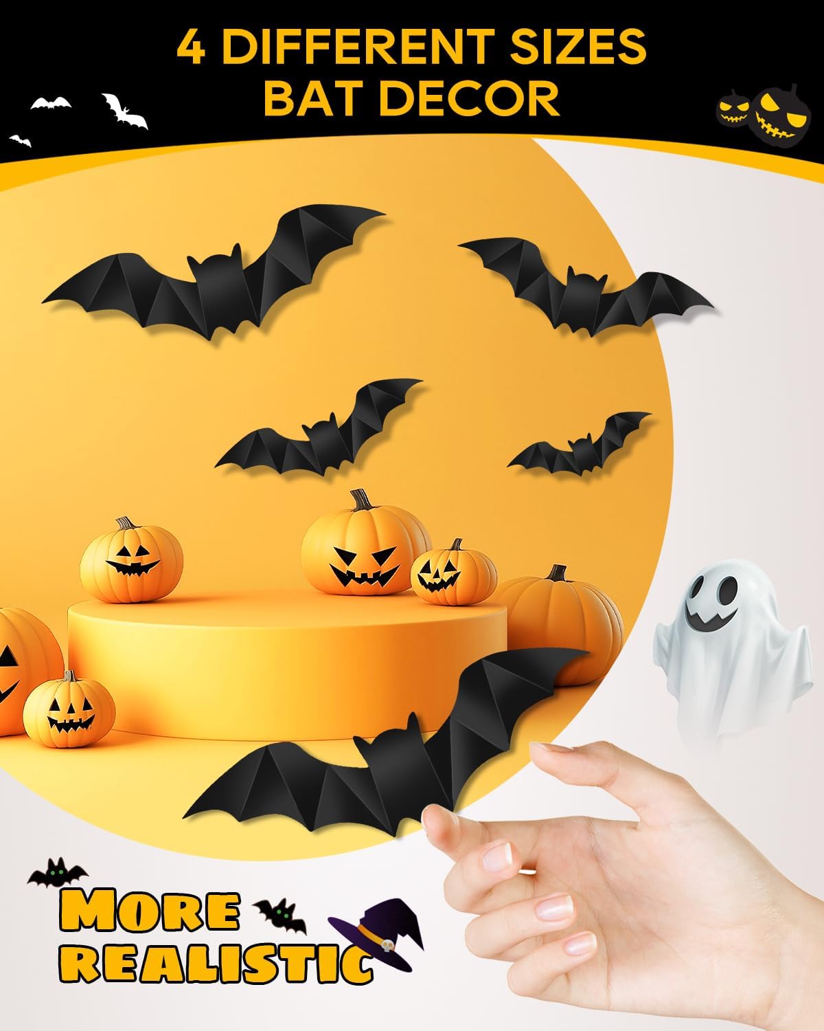 - 3D Bats Wall Decor: Create a haunted house effect with our peel-and-stick 3D halloween bats stickers! Made of flexible vinyl, they cling to walls, windows, or mirrors without residue. Includes 16 bats in varying 4 sizes for a dynamic flying illusion