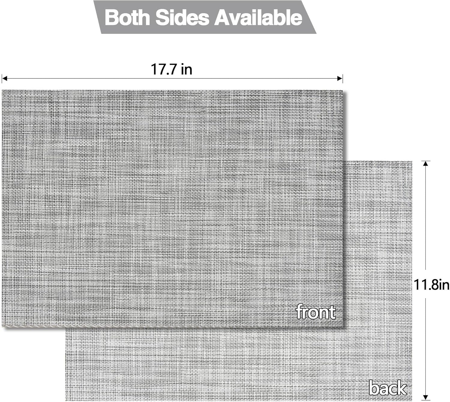- Environmentally Material: 70% PVC and 30% Polyester. PVC materials are used for the placemats, very durable, flame-retardant, no fading and heat resistant, very safe to use, all placemats are cut by machine with no rough selvedge, free bending, free cutting. Placemats for dining table set of 6, they are the best decoration and protection for your dining table