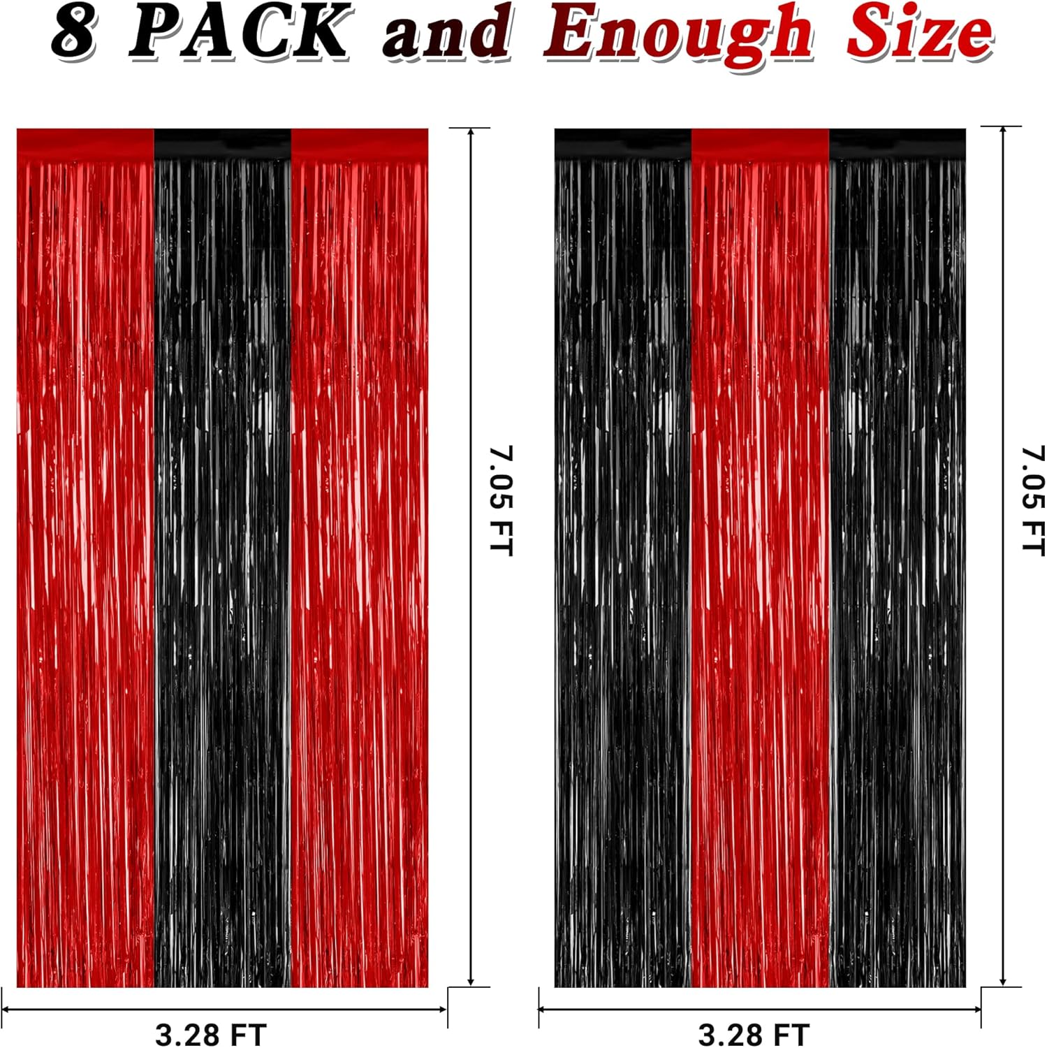 - Package Includes: You will receive 8 pcs red and black foil curtains, each measuring 3.28 ft x 7.05 ft, oversized to be cut to your desired length, perfect for Halloween party decor.