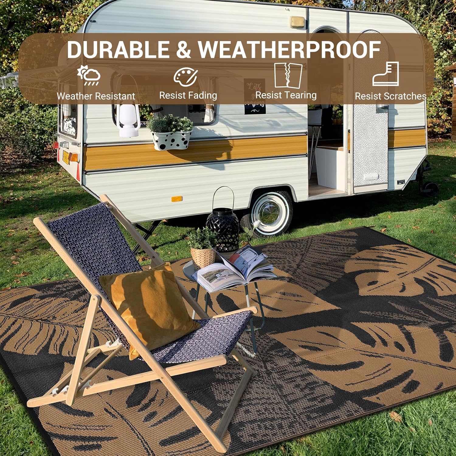 - Waterproof & UV Resistant: Made from high-quality plastic straw, this waterproof outdoor rug repels water and resists fading under the sun. Perfect as a patio, deck, or outside rug, it stands up to rain, spills, and daily outdoor use with ease