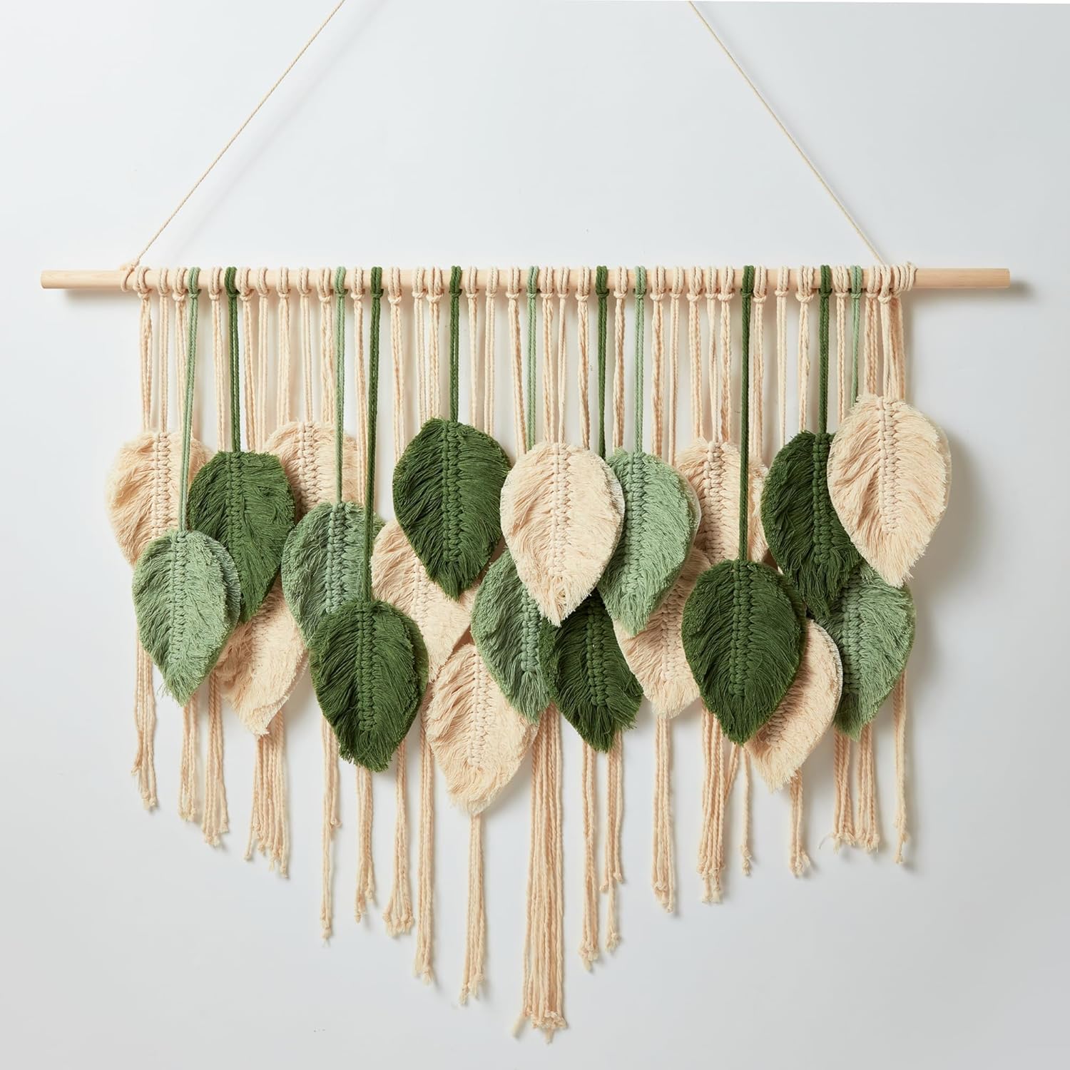 - 【Boho Leaf Design】- Macrame wall decor features intricately woven green and white cotton woven leaves, creating a natural boho home vibe. Elevate your space with our bohemian-style macrame leaf wall hanging