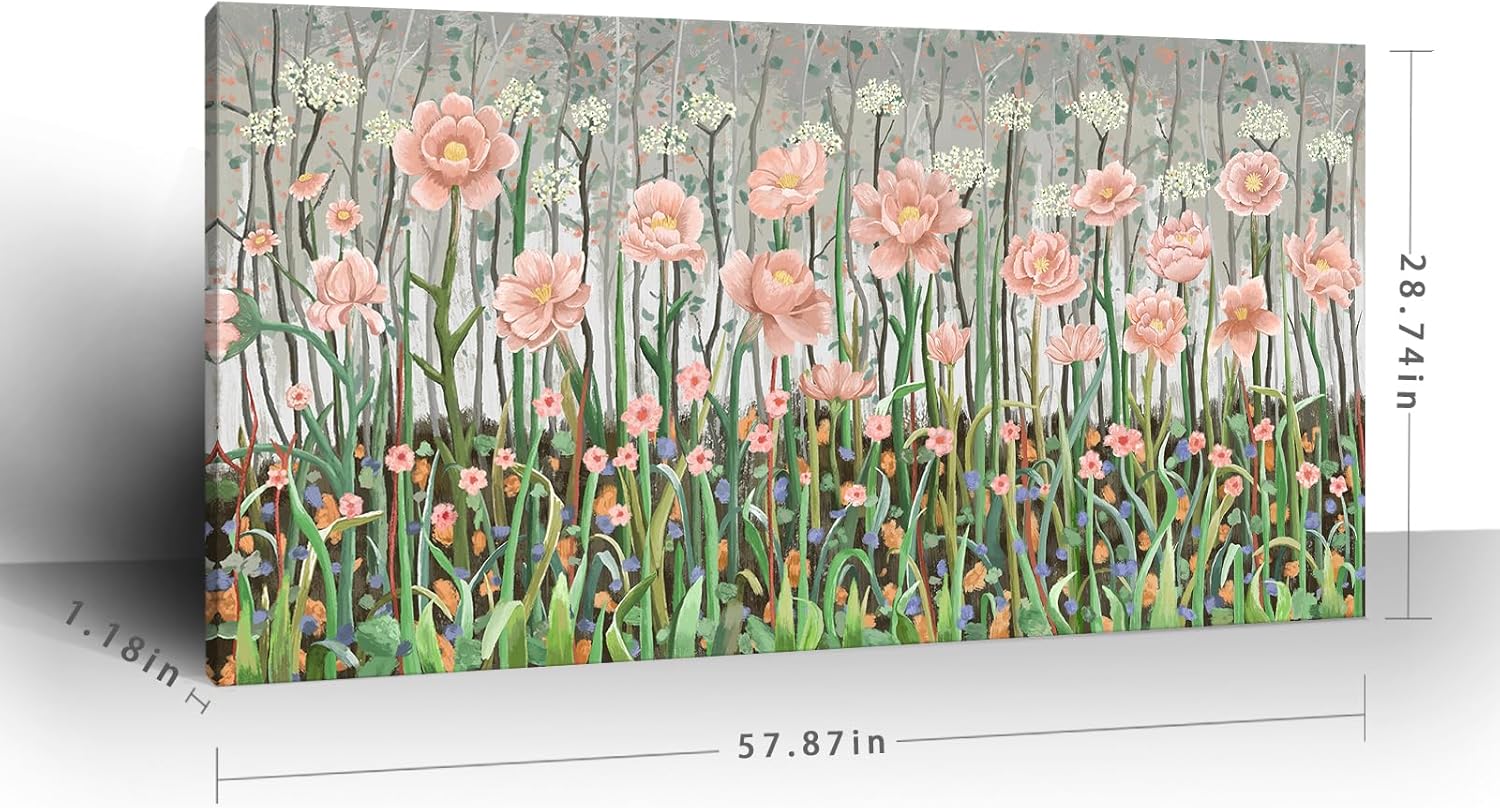 amatop Extra Large Floral Wall Picture for Living Room Modern Botanical Canvas Prints Flower Field Wall Decor Abstract Nature Art Wildflower Garden Pink Green Stretched Artwork Bedroom Office 58x29 in