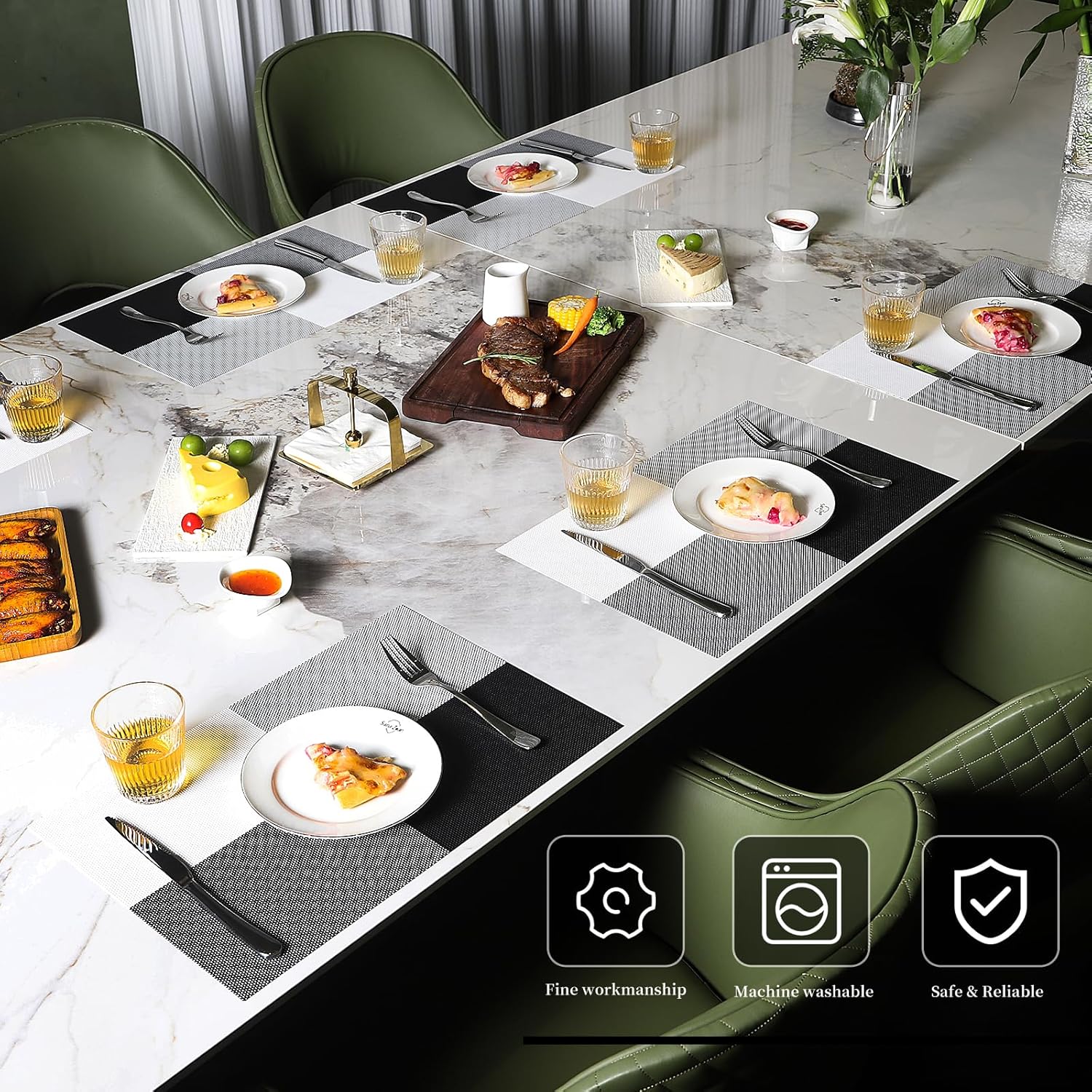 - 【Home Practical Decor】: Various types of modern textured and color placemats are available, 18x12 inch extra large rectangular perfect size set of 4 pieces placemats, is a decorative accessories of the table setting, both indoor and outdoor will be perfect for your dish or dinner plate size. These placemats can be rolled up through long storage and put away, will remain stay flat when spread out, very easy to store and carry around