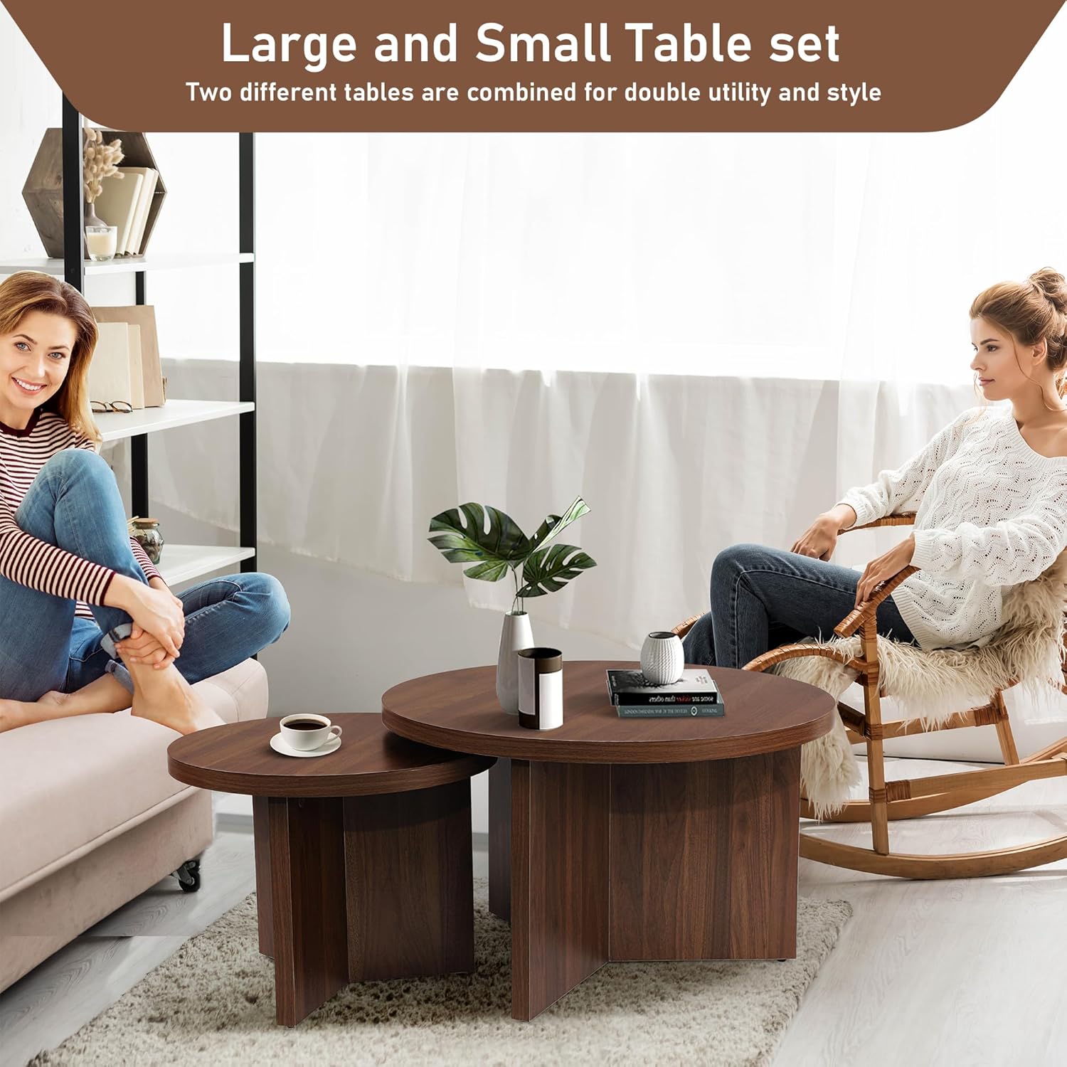 - 2-Piece Round Coffee Table Set: This nesting coffee table set includes two round tables designed to complement each other, giving your living space a modern and cohesive touch. Use them together for a layered look or separately to maximize your roomâs functionality and style.