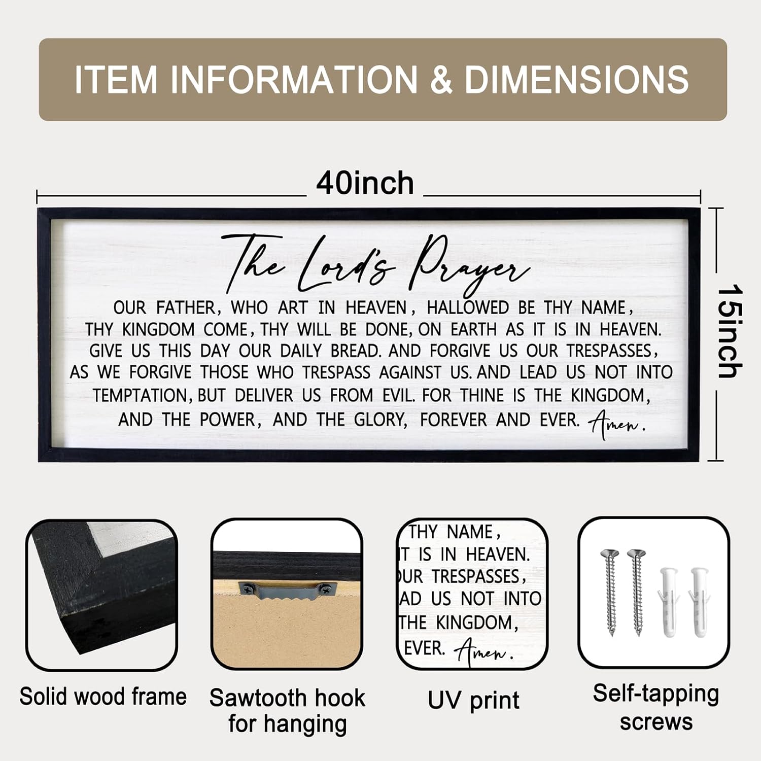 Our Father Prayer Bible Verse Framed Wall Art, 40''×15'' Black Horizontal Religious Christian Lords Prayer Sign for God Jesus Christ Prayer, Rustic Holy Inspirational Catholic Scripture Decor