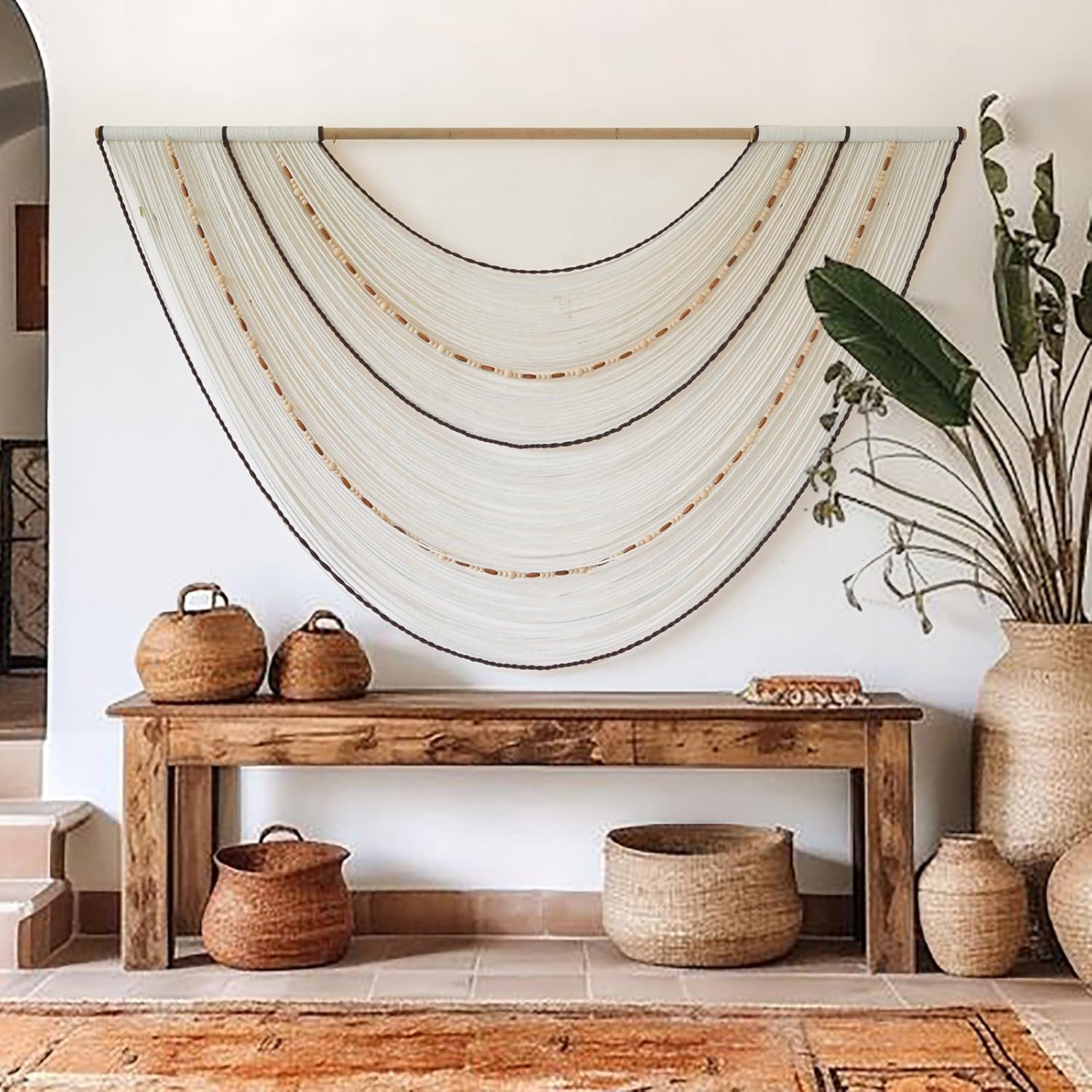 - 【Style】 Large macrame wall hanging crafted from 100% natural cotton cord with smooth wooden beads. This unique piece of macrame wall decor adds warmth, texture, and artisanal charm to living rooms, bedrooms, entryways, or farmhouse interiors.