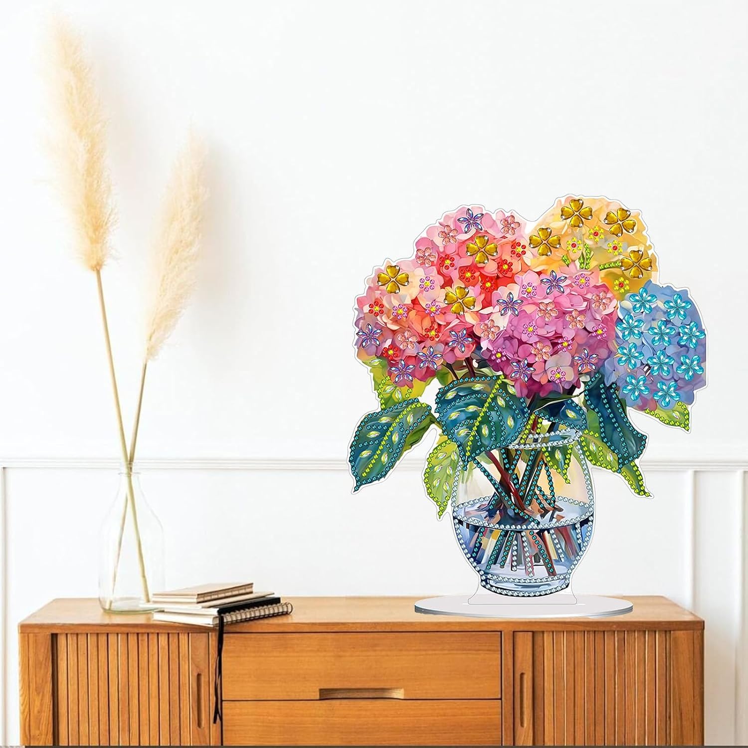 - 【Home Decor】:Diamond Art Painting ornament with base design, you can place it in your living room, fireplace, cabinet, shelf and other places you like. The combination of single-sided sparkling diamonds and the beauty of shaped diamonds enhances the visual appeal and uniqueness of the artwork, and the inlaid rhinestones refract the shimmering luster under the light.