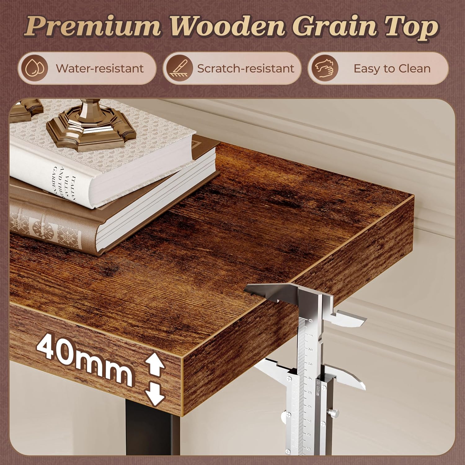 - 【Warm & Rustic Entry Table】Blending rustic farmhouse warmth with clean industrial lines, this sofa console table features a rich country brown woodgrain finish and a sturdy black T-shaped metal frame. It’s a cozy yet modern accent that adds character to your entryway, hallway, or living room