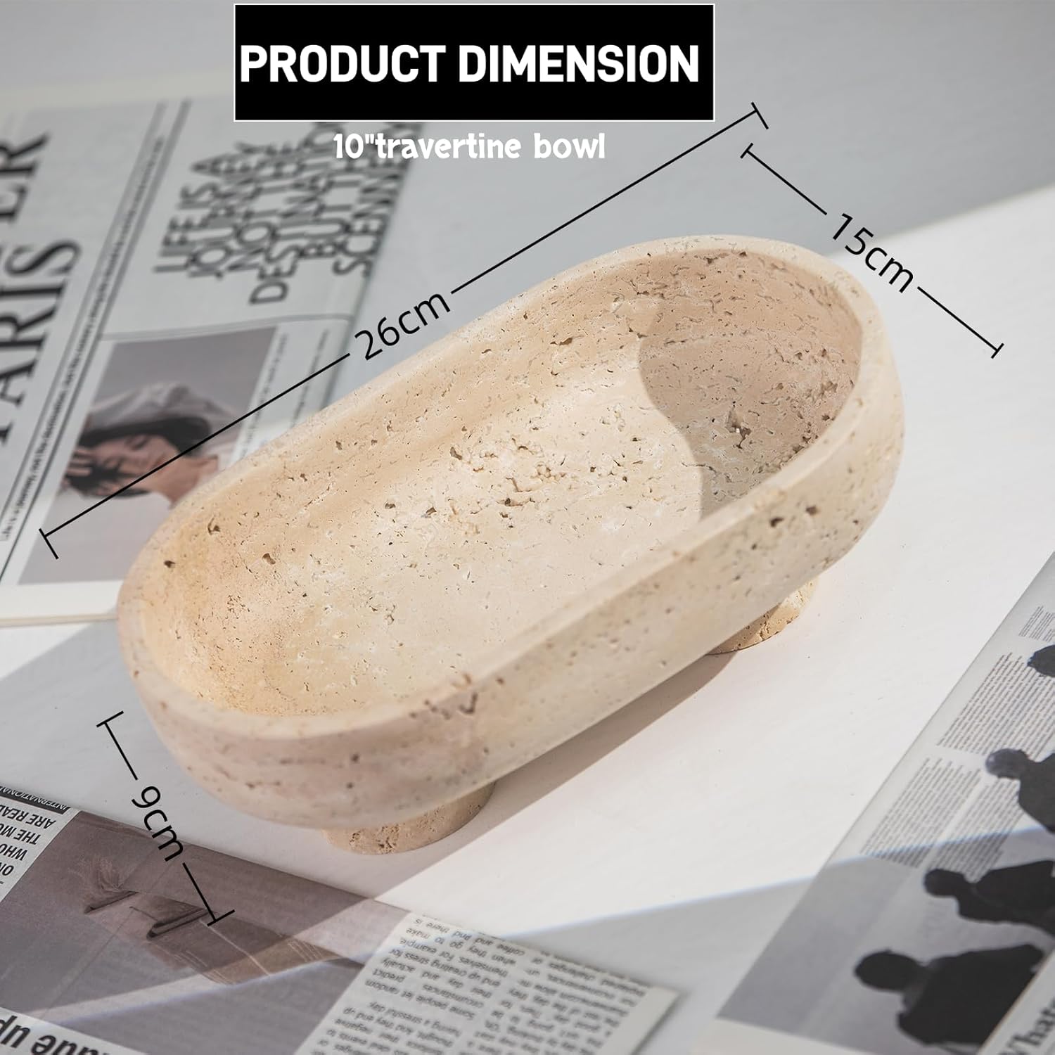 Natural Oval Travertine Fruit Bowl 10" – Large Decorative Bowl & Travertine Decor Pedestal for Kitchen Counter & Dining Table ,For Entryway, Kitchen Fruit Bowl, Potpourri, Dining Table Centerpiece.