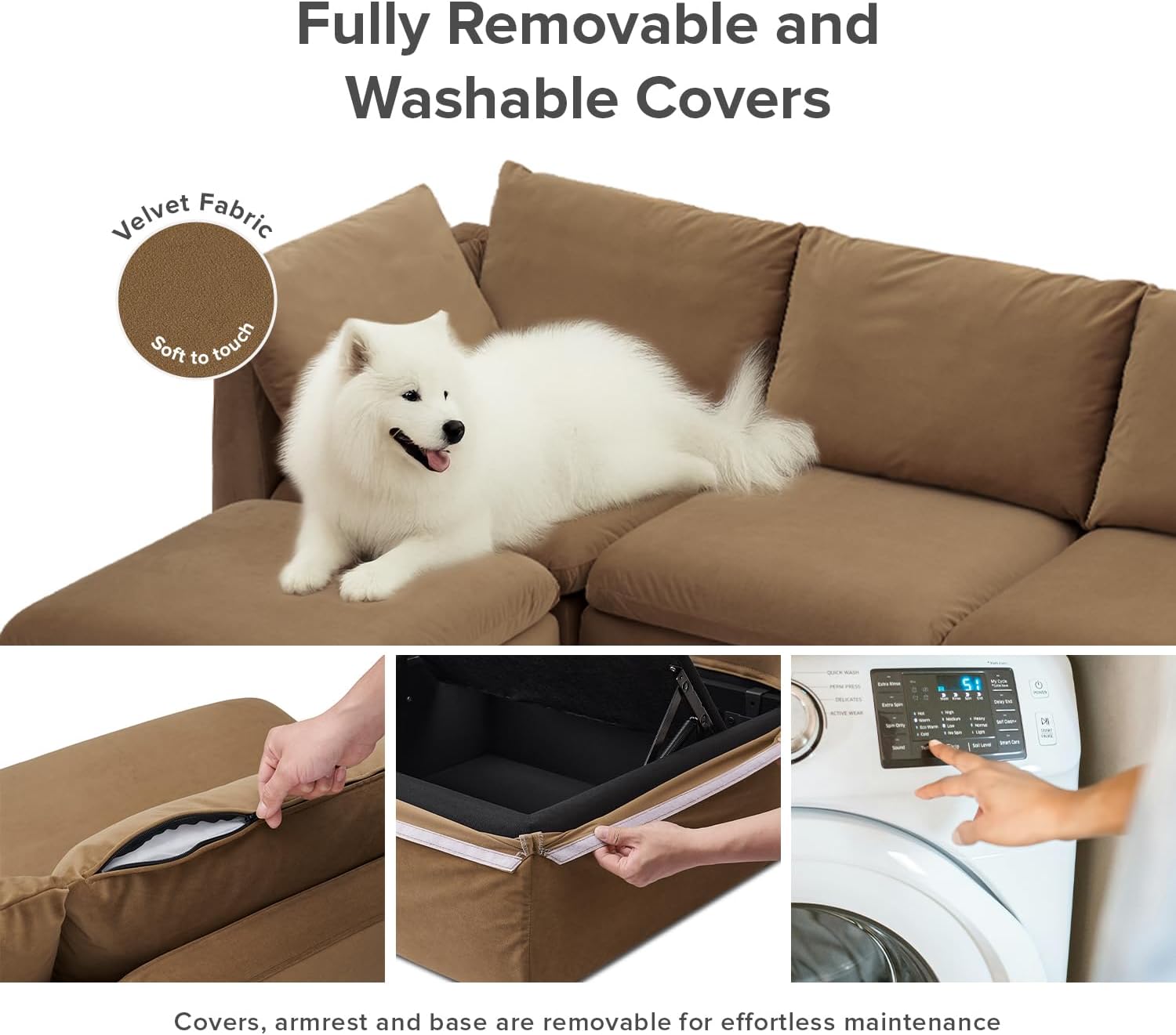 mopio Oversized Modular Sectional Sofa with Fully Removable Covers and Storage, Convertible U, L-Shaped and Sleeper Sectional, Modern Couches with Ottoman Chaise (Hazelnut Velvet, 6 Seats, Sleeper)