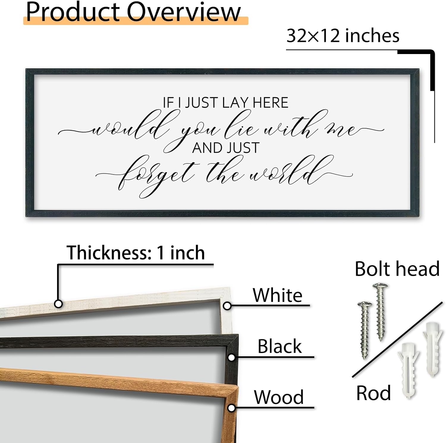 SRSZHIYUE If I Lay Here Would You Lie With Me Sign Bedroom Wall Decor Art 32"×12" Large Wood Framed Wall Hanging (Black)