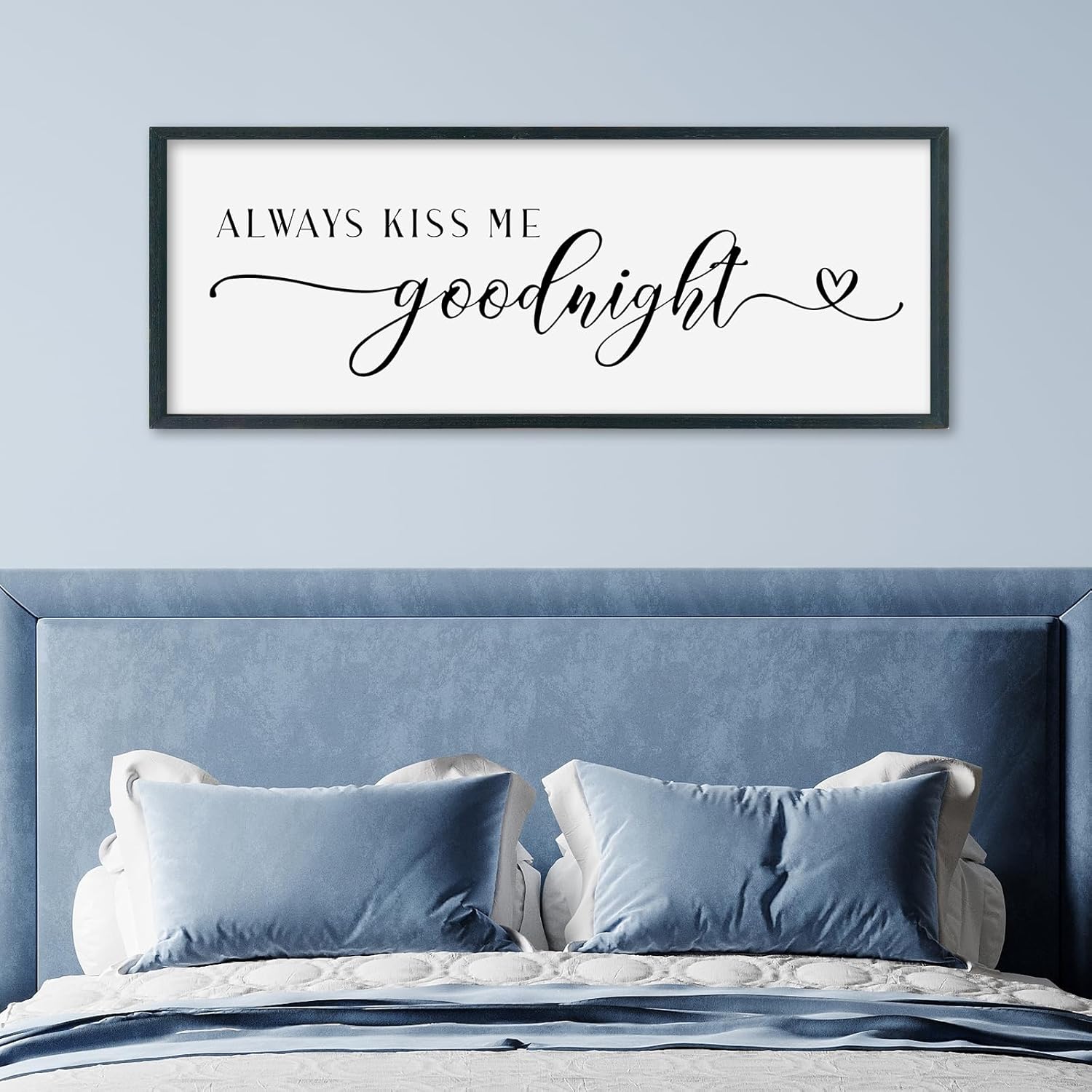 SRSZHIYUE Always Kiss Me Goodnight Sign Wall Decor Art for Master Bedroom Above Bed 40"×15" Large Wood Framed Wall Hanging (Black)