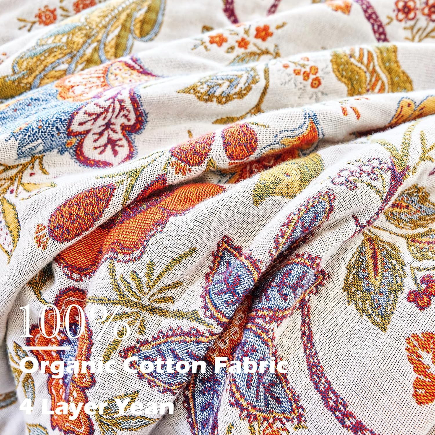 Boho Throw Blanket, 100% Organic Cotton Breathable Ultra Soft Bed Quilt Throw - All Season Floral Bird Butterfly Farmhouse Decor Blanket for Sofa Couch Chair and Gift. 60" x 80"