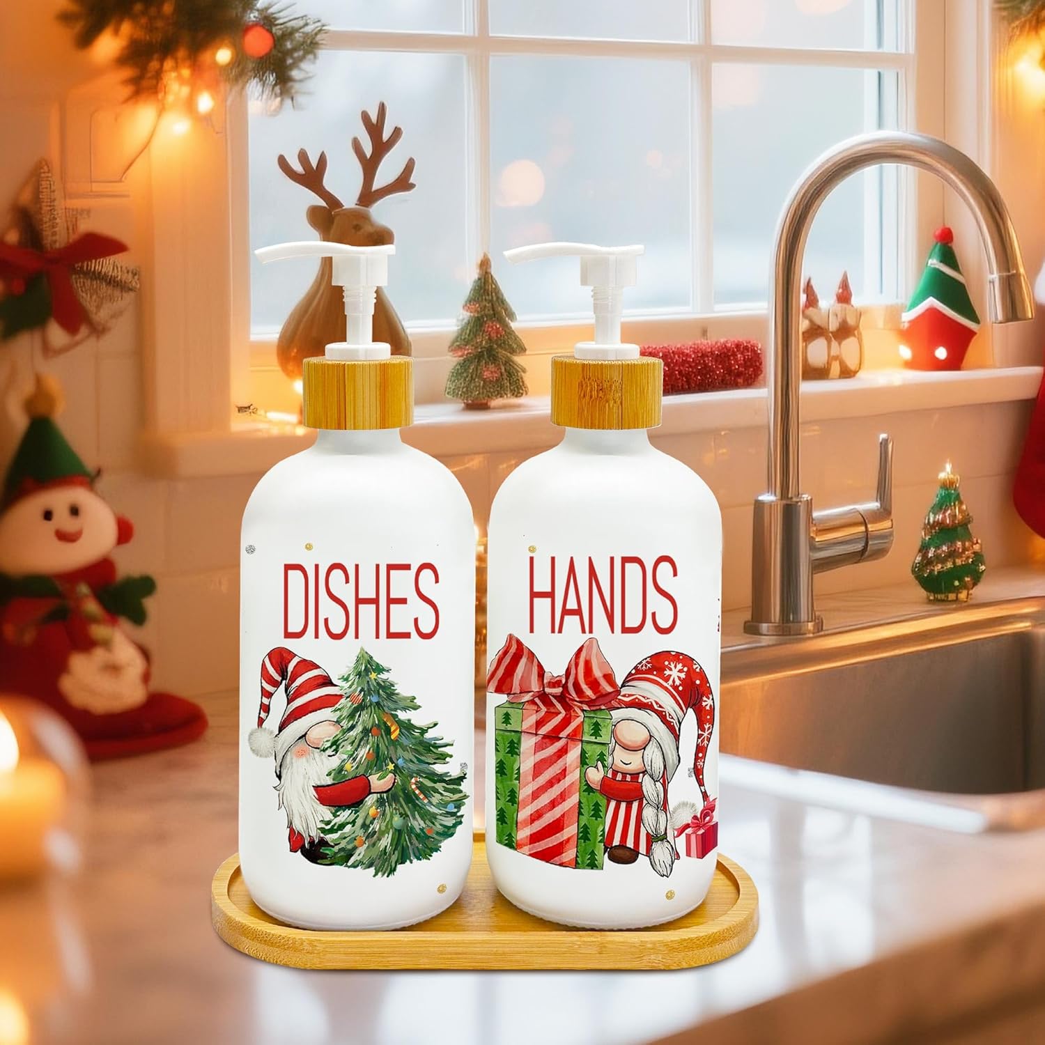 - Christmas Kitchen Decor: This Christmas soap dispenser features a beautiful gnomes pattern and the words "Dishes Hands", incredibly vivid and charming, exuding a pronounced Christmas ambiance, thereby imparting a touch of refinement and beauty to your kitchen