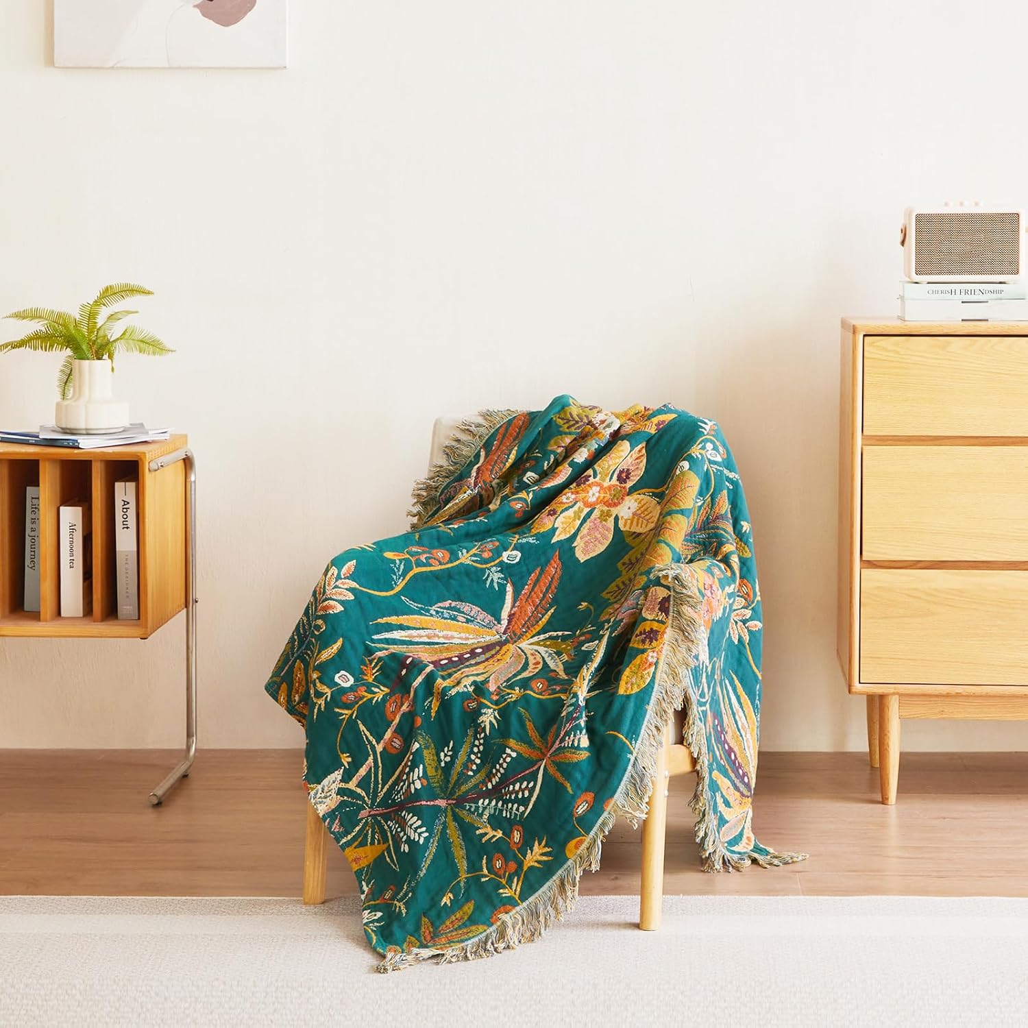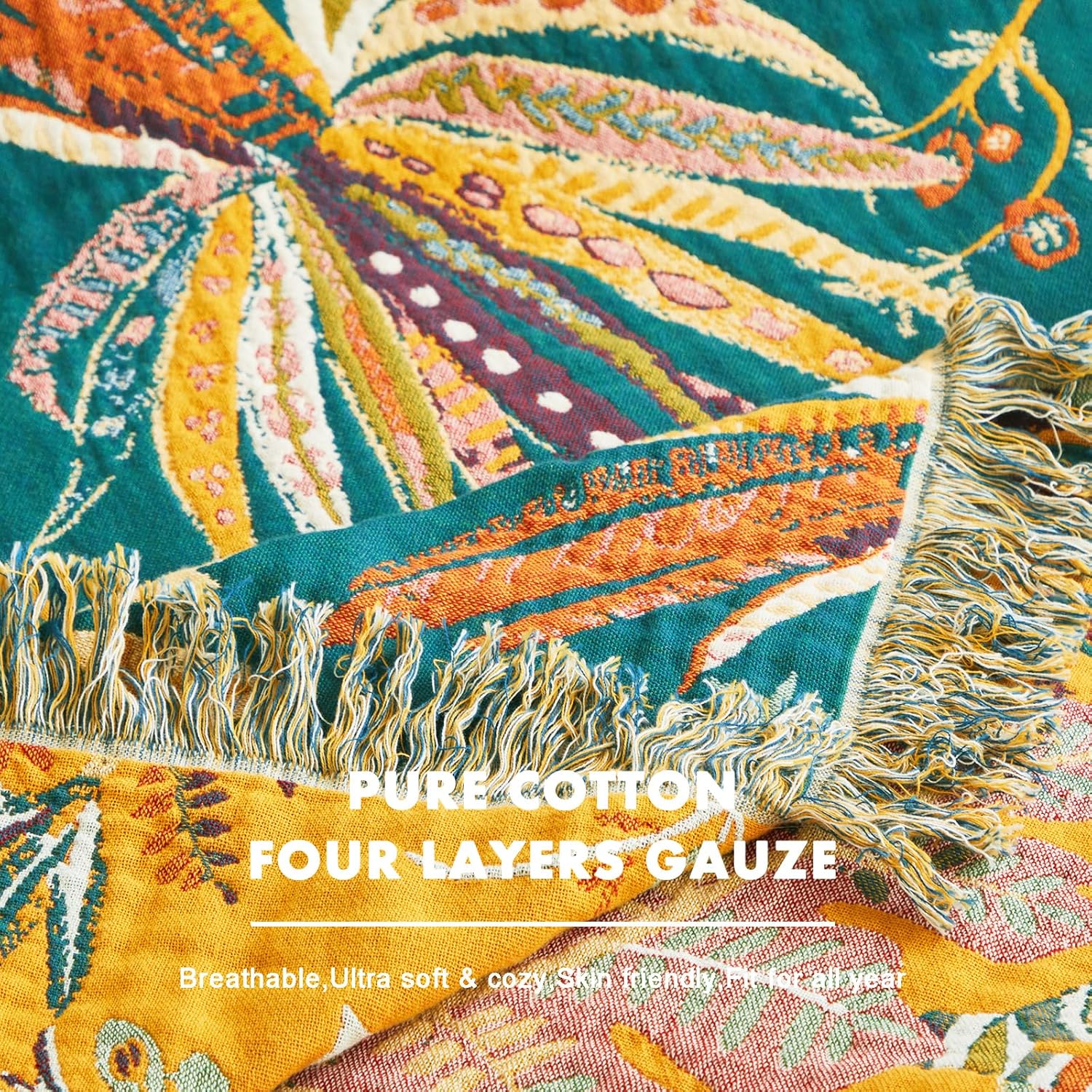 - 【MATERIAL】100% cotton,our boho throw blanket is made of high quality of 100% cotton,free from harmful substances and harsh chemicals,universal for all seasons,quite soft and breathable,bringing you warmth in cold days.The cotton blanket measures 80"x60" inch (150 x 200cm) and the weight is 2.2 lbs (1kg).
