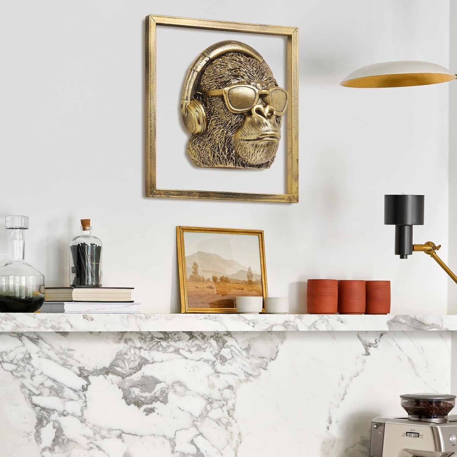 - Trendy Design:Gorilla head with headphones and sunglasses brings a hip, artistic vibe to any room’s walls
