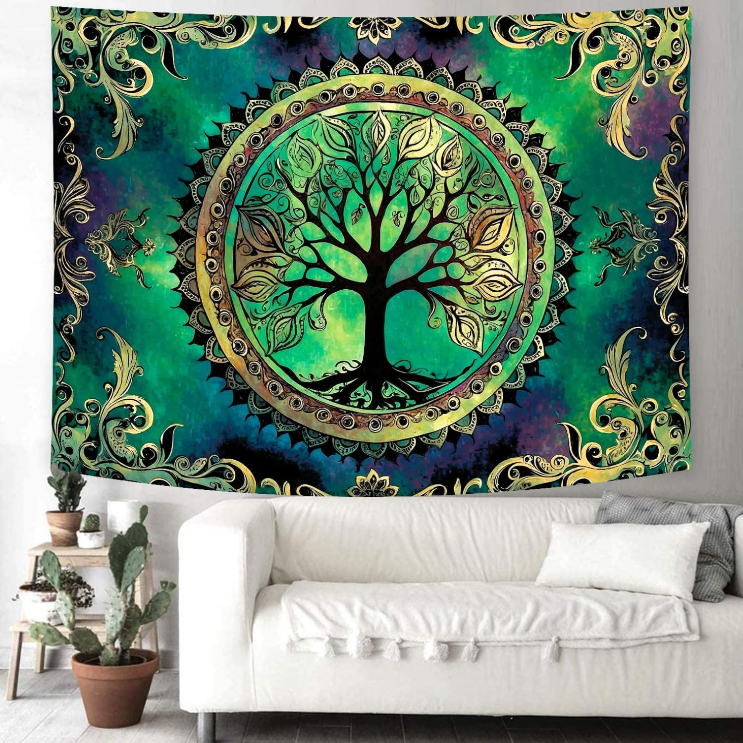 Delur Tree of Life Tapestry Green Nature Bohemian Mandala Spiritual Tapestry Wall Hanging Mystical Landscape Hippie Psychedelic Headboard for Bedroom Living Room Home Decor (51.2" x 59.1")