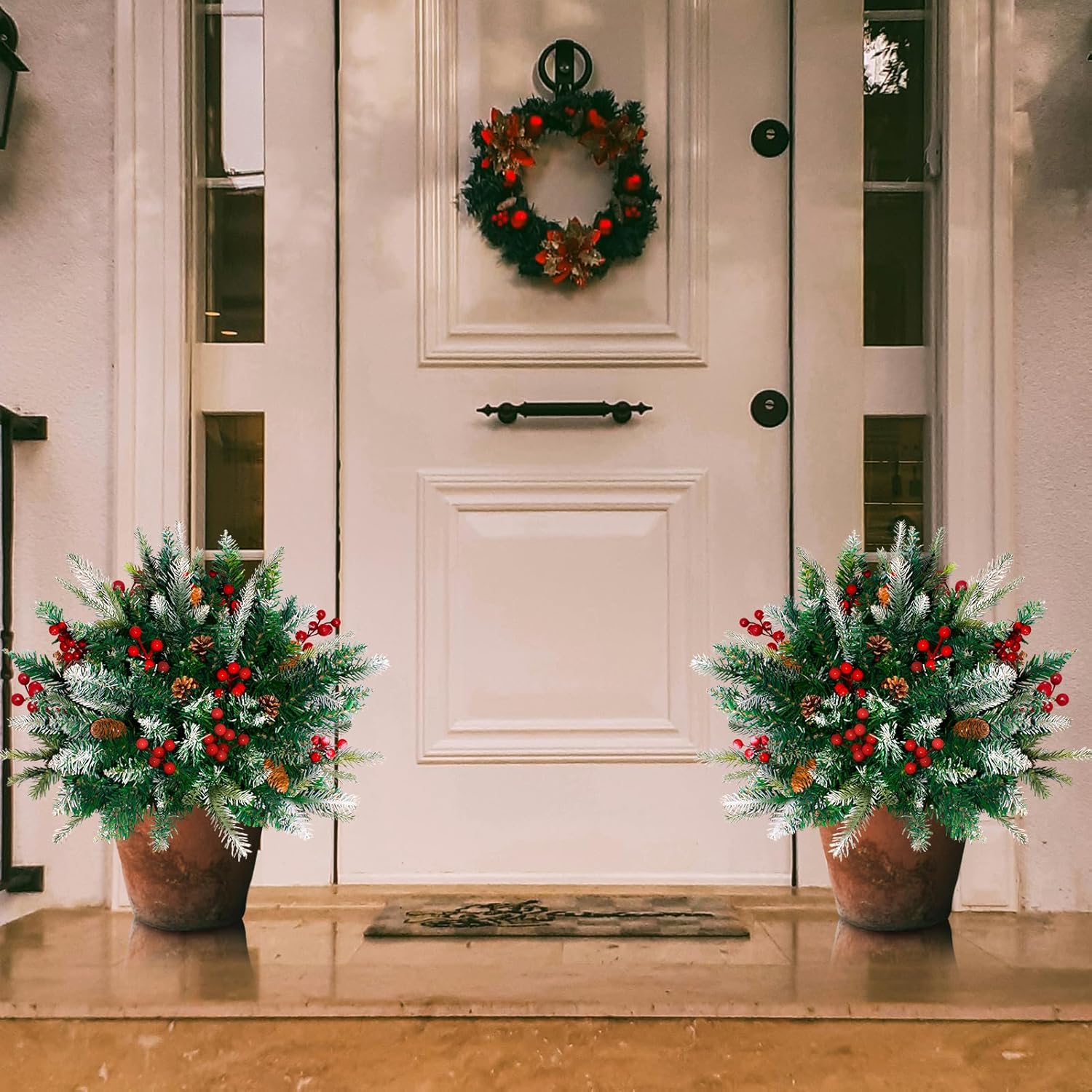 - 2-Piece Artificial Urn Filler Decoration: This 2-piece set of realistic artificial Christmas tree decorations is made of high-quality materials and looks extremely lifelike, ensuring both beauty and durability. The design includes elements such as pine needles, berries, and pine cones, adding a touch of elegance to your Christmas celebrations