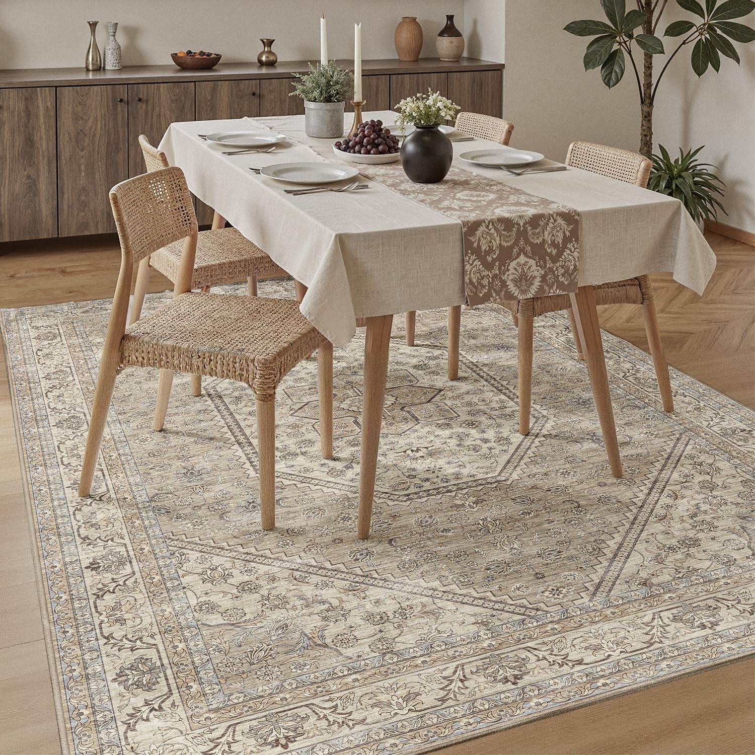 - 【Effortless Machine Washable Area Rug】Keep your 8x10 brown and beige washable rug fresh with zero hassle! perfect as a soft low pile large washable rug for living room, dining room under table rug, or bedroom floor mat, it withstands daily messes. simply vacuum regularly or toss in washing machine—air-dries rapidly while resisting fading. durable for everyday use-machine washable rug 8x10 bedroom