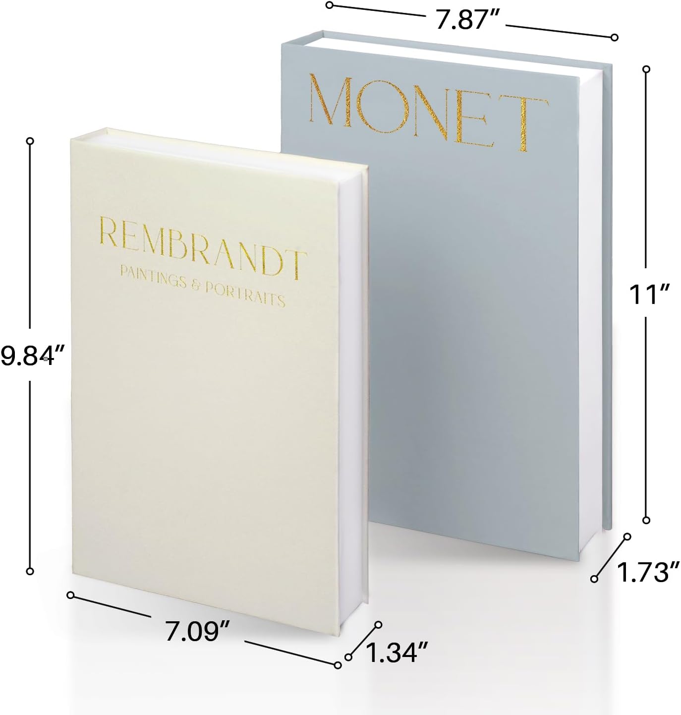 - Lightweight and Movable Design:Includes 2 size-"7.87x11x1.57 & 7.09x9.84x1.19”.These aesthetic fake decor books match well with other decor accents,enhance fashion sense for your living room or office.