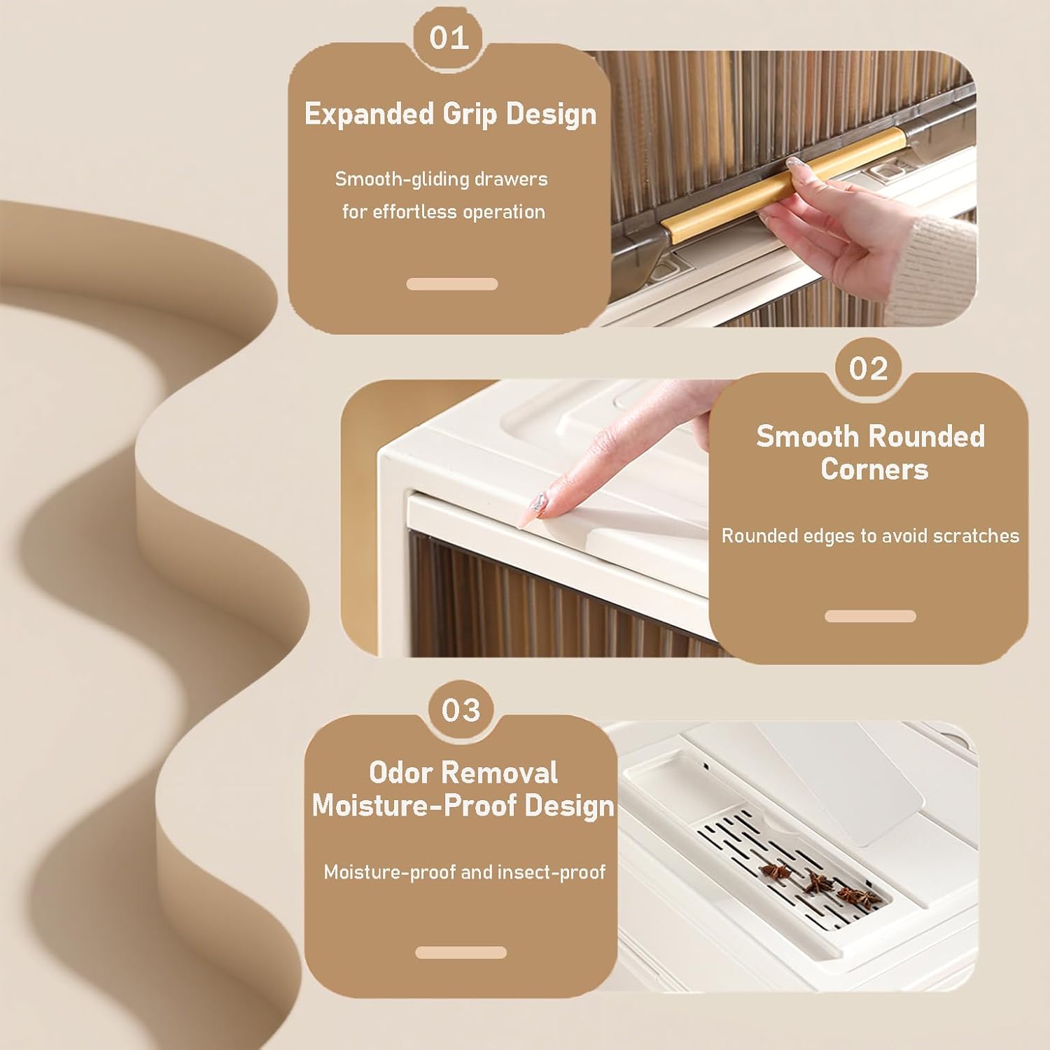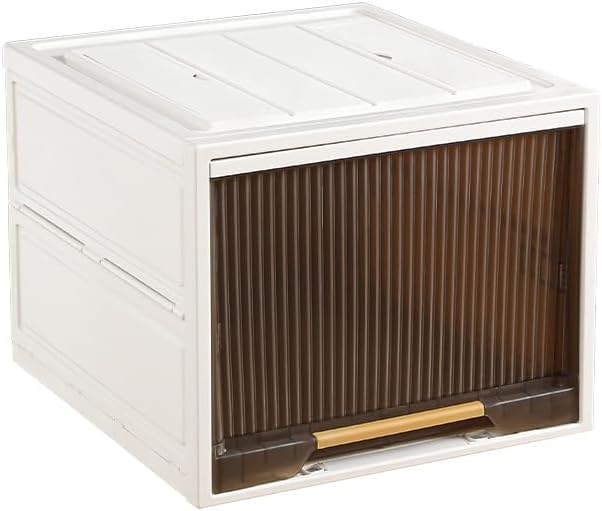 - 𝐃𝐫𝐚𝐰𝐞𝐫-𝐒𝐭𝐲𝐥𝐞 𝐃𝐞𝐬𝐢𝐠𝐧:Unlike traditional door-opening designs, this storage bin innovatively adopts a drawer-style design for effortless access, with integrated sliding rails that protect floors and wardrobes from scratches.