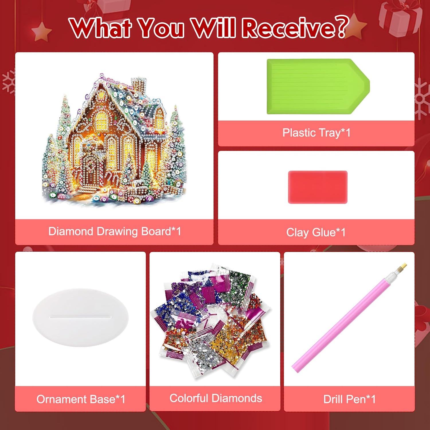 - DIAMOND ART PENDANT KITS: You will receive DIY desktop diamond ornament board *1, ornament base *1, dotting pen *1, glue *1, diamond tray *1 and enough colorful sparkling crystal diamonds, just a few simple steps and a little bit of time to get started easily, anyone can make exquisite desktop ornaments