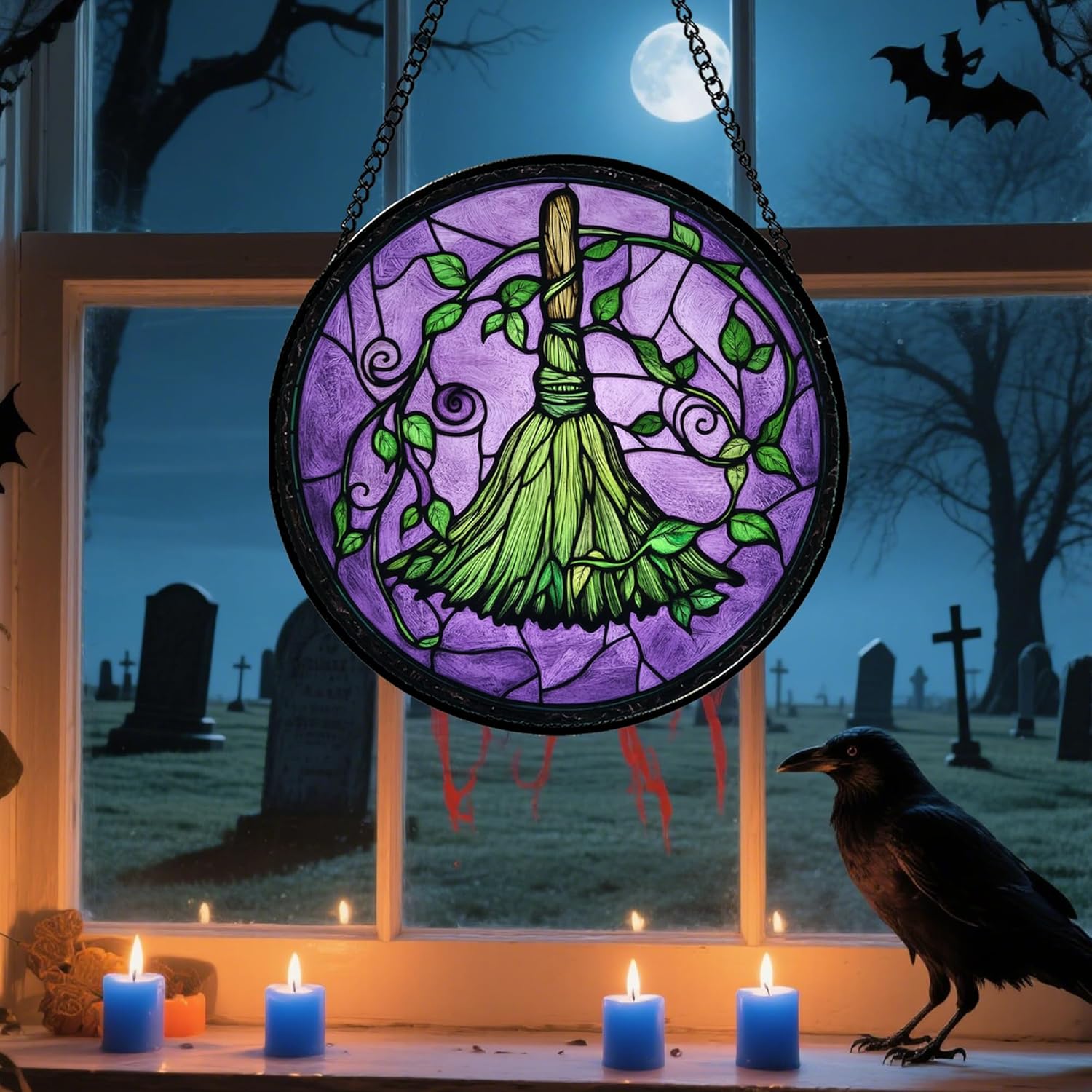 - Easy to Hang & Display: Comes with a sturdy hanging chain. You can effortlessly hang it on any window, door, or wall. No complex installation needed, allowing you to quickly decorate your home for Halloween parties or daily festive vibes.