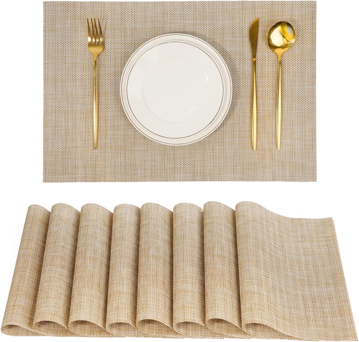 Placemats Set of 8,Non-Slip PVC Weave Table Mats Easy to Clean,Heat Resistant Place Mats for Kitchen Dining Table Decoration Indoor Outdoor,Beige