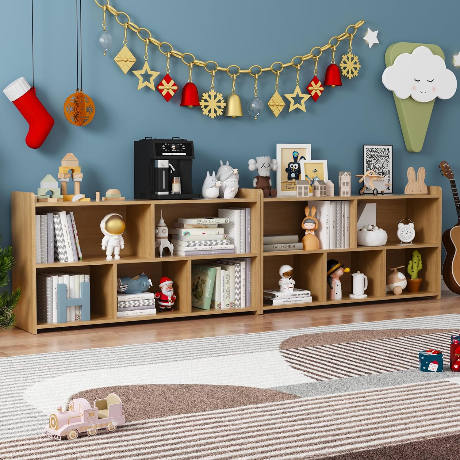 - ăLarge Capacity BookcaseăThis bookshelf features 5 large storage cubes to display and store your books, plants, photos and collections. The Bookcase can be used not only as a bookshelf, but also as a display cabinet, file cabinet and general storage cabinet that can be placed in bedrooms, living rooms and offices.