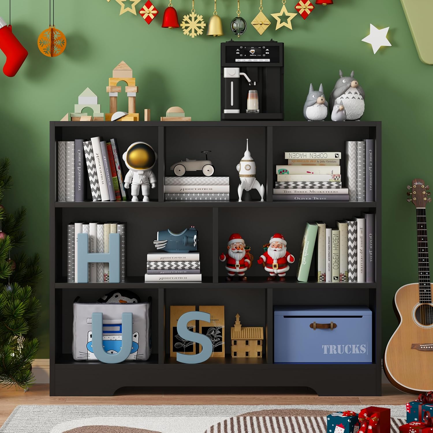 Book Shelf, 8 Cubes Storage Organizer, Freestanding Black Bookshelf Cube Shelf for Bedroom, Living Room, Home Office, 3-Tier Open Shelf Wooden Bookcase