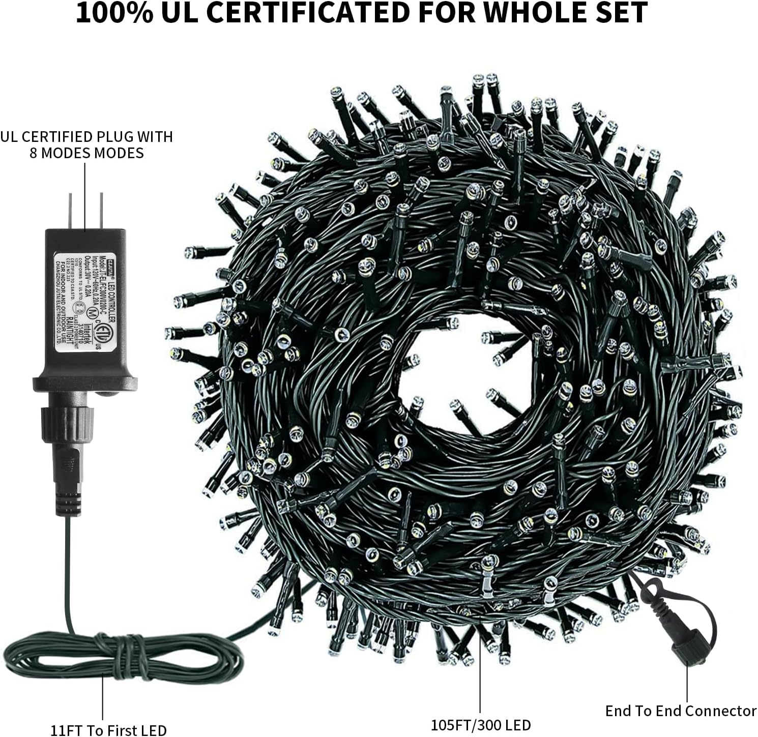 XTF2015 Christmas String Lights, 105ft 300 LED Christmas Lights 8 Modes Memory Function & Timer- UL Certified - Outdoor Indoor Christma s Fairy Lights for Tree, Garden, Party, Wedding(Red + White)