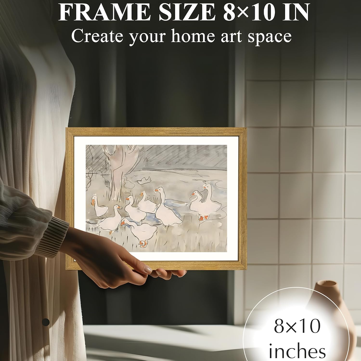 Vintage Framed Goose Wall Art Watercolor Print, Rustic Farm Duck Decor Canvas Painting, Minimalist Pastoral Poster Picture, Country Cottage Wall Decor for Living Room Kitchen Bathroom Bedroom 8x10 in