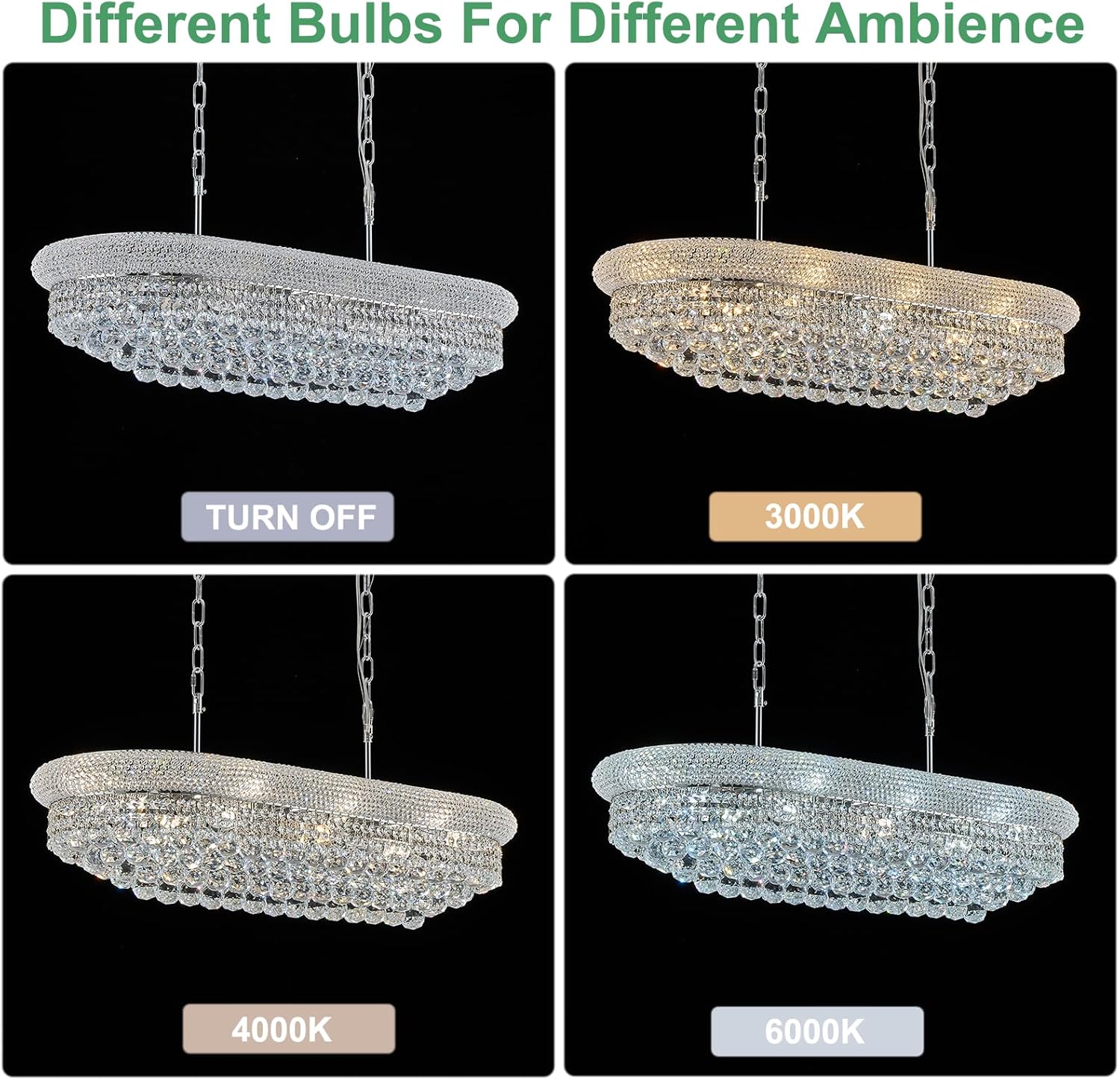 Rectangular Crystal Chandeliers for Dining Room,10 Lights Adjustable Height Oval Crystal Ceiling Light Fixture for Kitchen Island, Chrome Finish, L36''