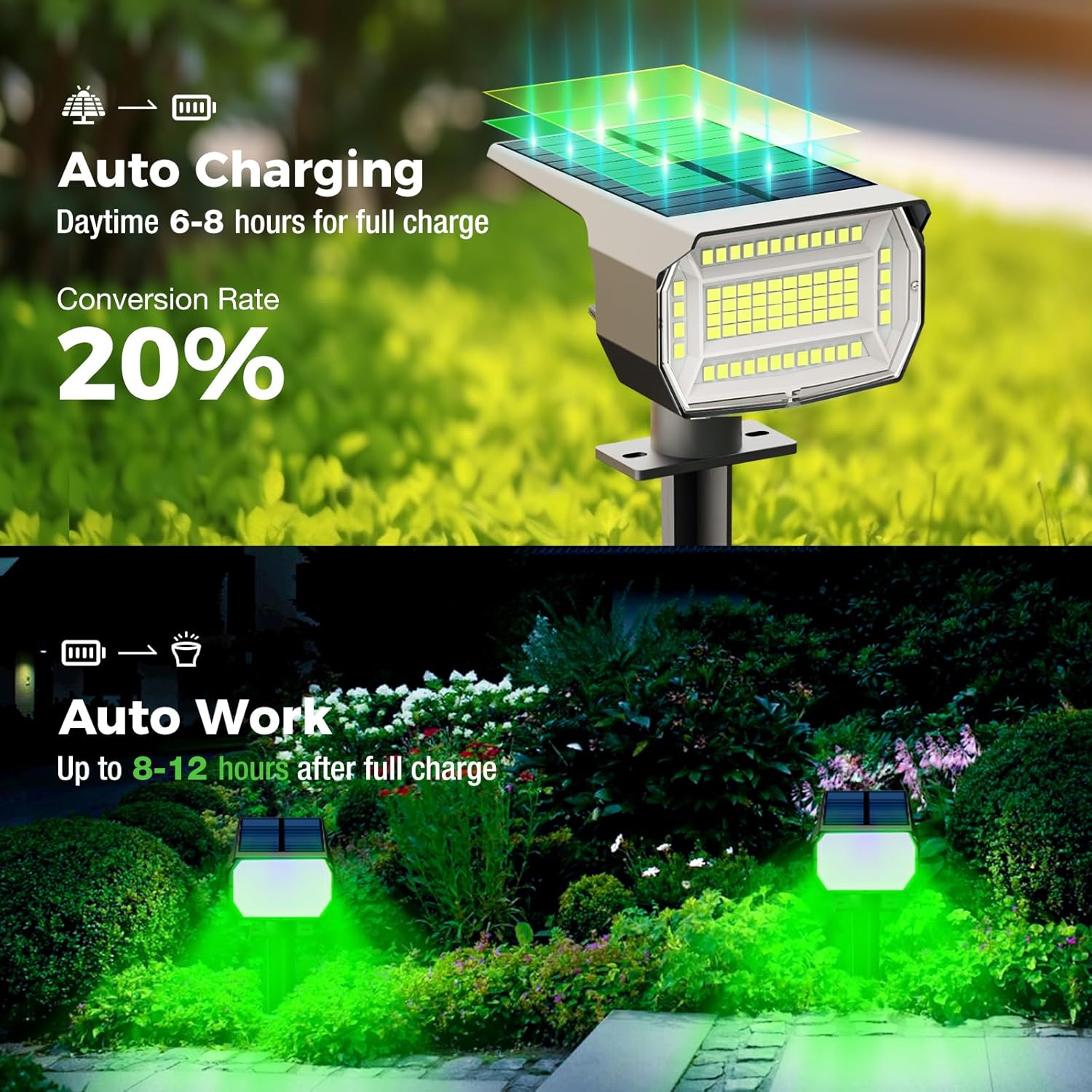 - Multiple Applications: Outdoor solar landscape spotlights will decorate your garden, yard, driveway, porch, patio, path, walkway, swimming pool, lawn, garden and more. Add life to your trees and plants and enjoy a satisfying nighttime light show. It's perfect for holidays, Halloween, Christmas