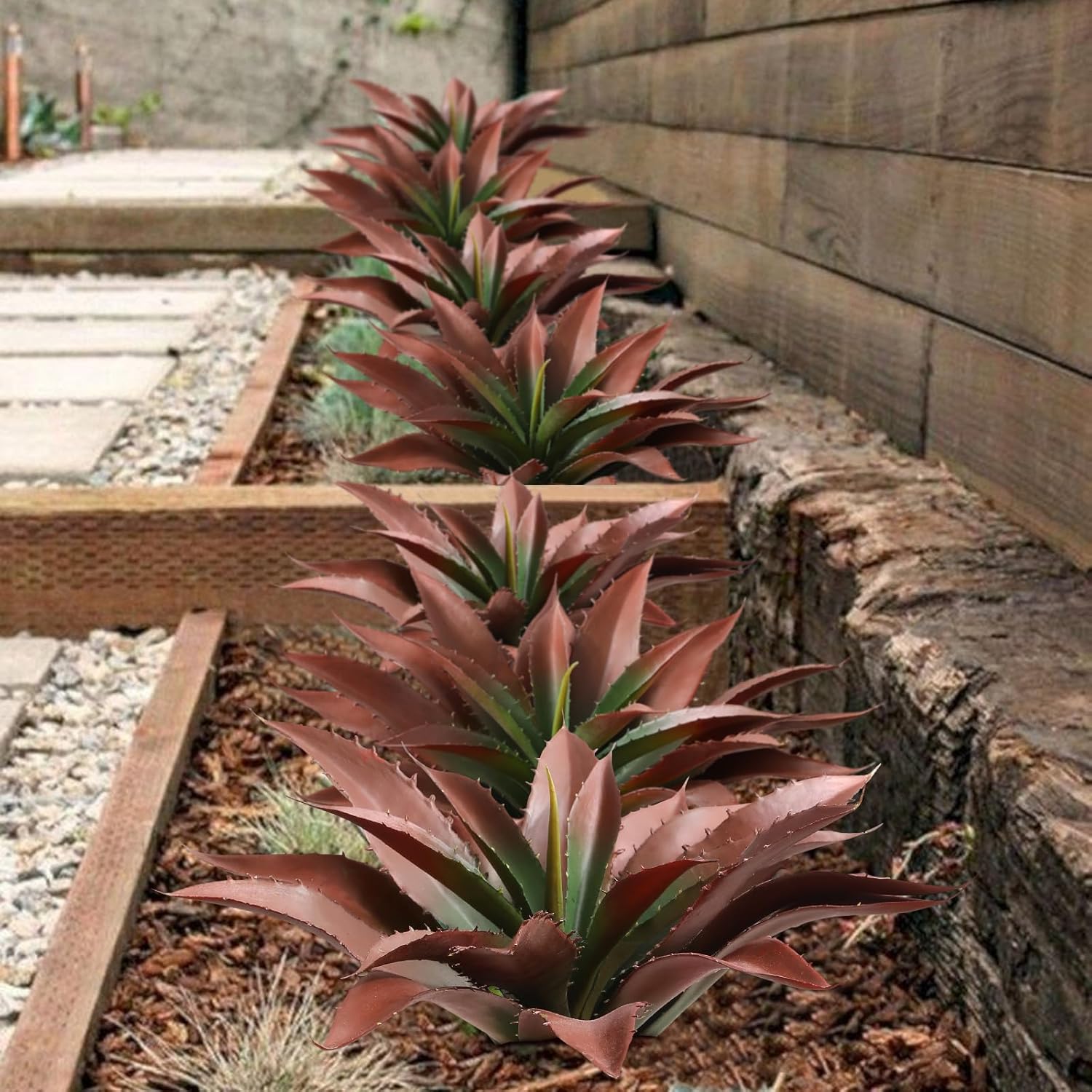 JUSTOYOU Large Artificial Succulents Aloe Plants Real Touch Fake Flowers Unpotted for Home Wedding Festival Arrangement (4, Green-Red)
