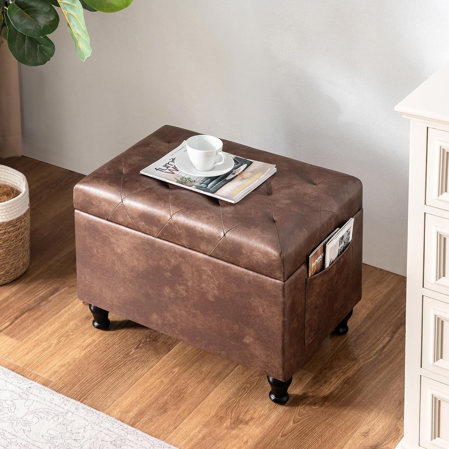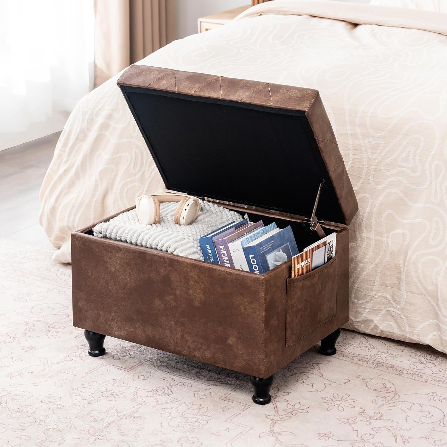 - ăVersatile Design for Multiple Usesă- Whether you need extra seating, a comfortable footrest, or a practical storage solution, this ottoman with storage does it all. Its versatile design makes it ideal for use in bedrooms, living rooms, entryways, or any area where you need both seating and storage.