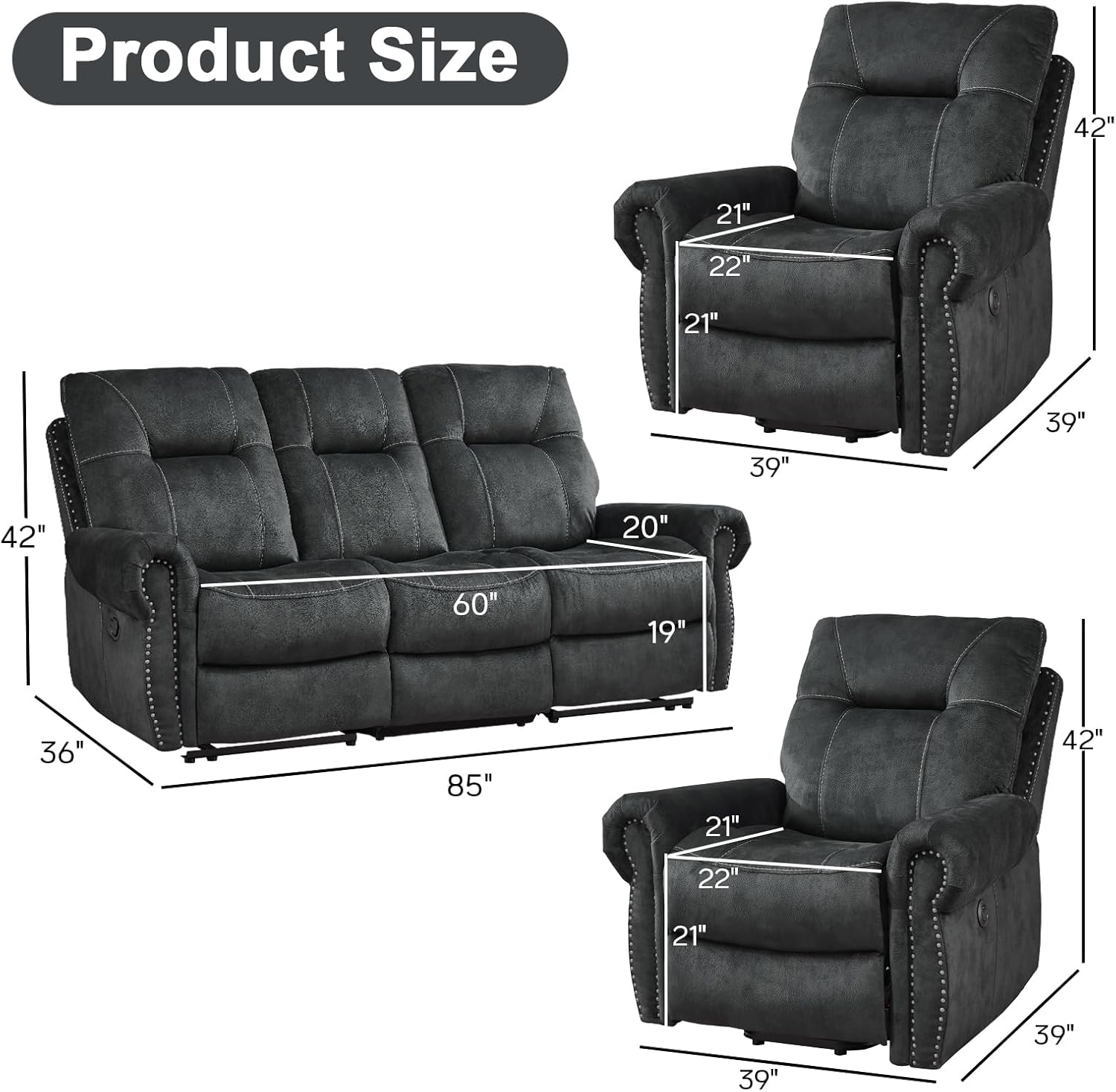 - Power Recliners with Massage & Heat Function: Each power recliner chair features built-in vibration massage and lumbar heating to soothe your body. The electric reclining function lets you adjust effortlessly with the push of a button