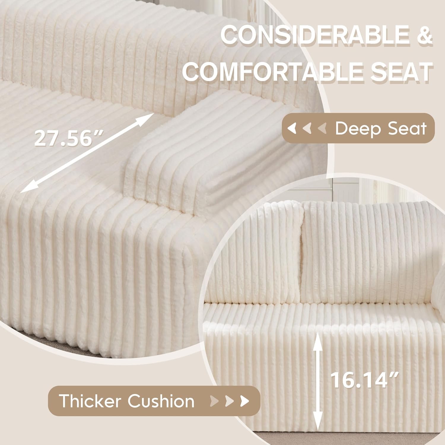 - Generous Seating Space: Our modular sofa offer plenty of seating space for you and your family. Whether sleeping, relaxing, reclining, or reading, our modular sectional couch can provide all-around comfort and peace of mind to you.