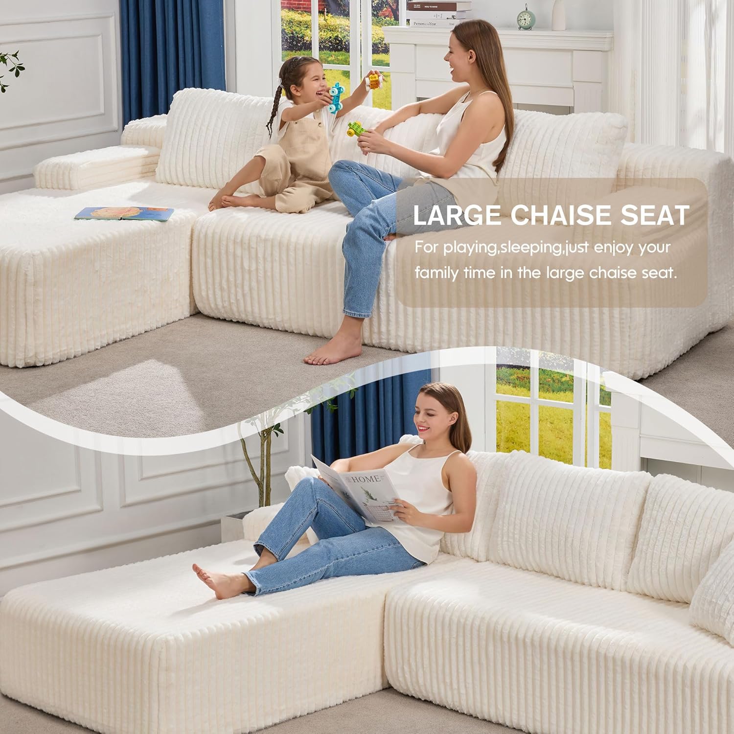 - Versatile and Flexible Modular Sofa: Our sectional sofa couch consists of 2 L-shaped oversized chaises, each L- shape sofa is lightweight. This modular sectional couch have 4 using modes, you can convert the modular sectional sofa according to your needs. Add flexibility and personalized style to your living space.