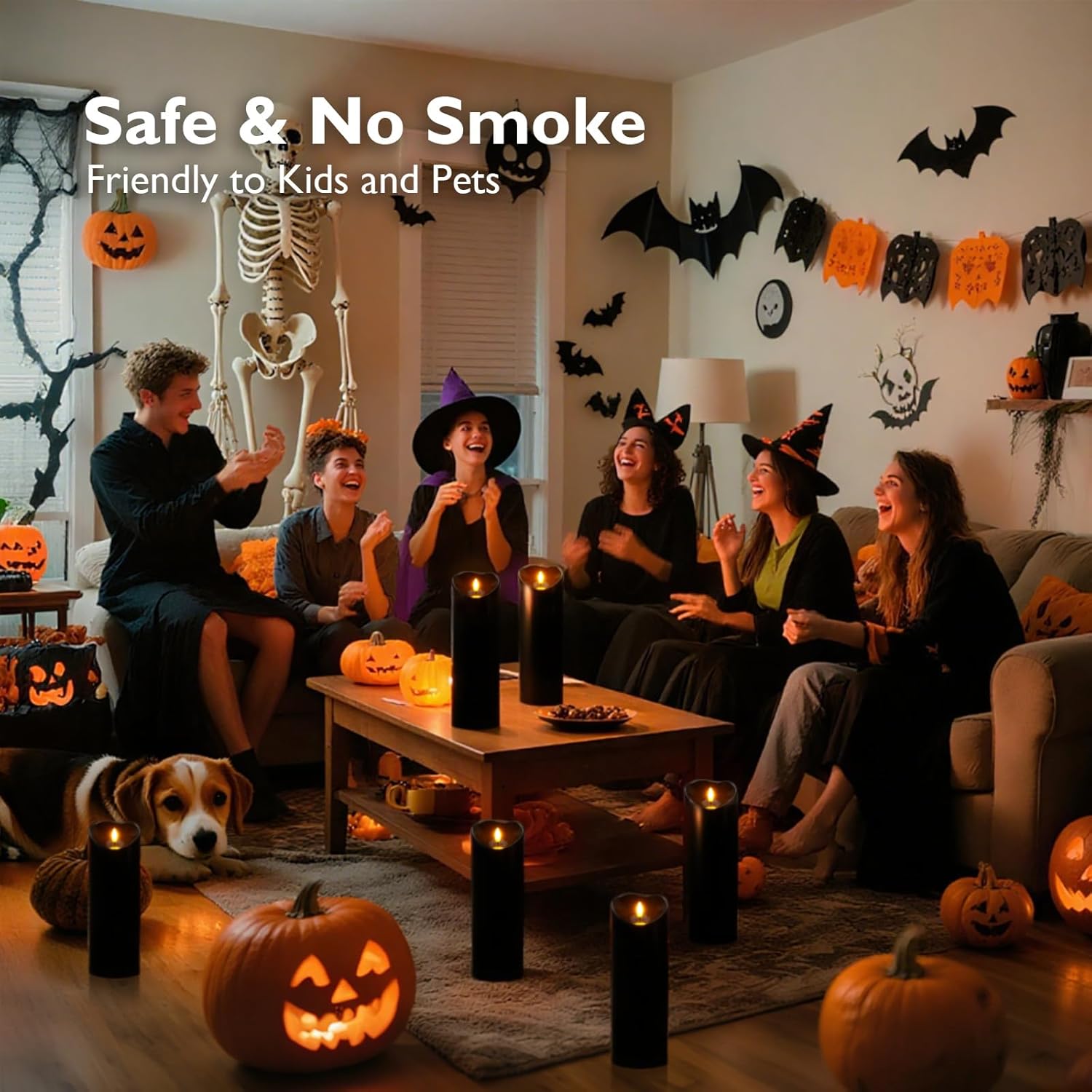 - Black Candles for Halloween: Homemory flickering flameless candles combine the 3D wick with waterproof feature, make the candles more realistic without worrying about melting or raining. They are great as halloween candles. Large candles designed to fit most lanterns. Add a spooky atmosphere to your Halloween!