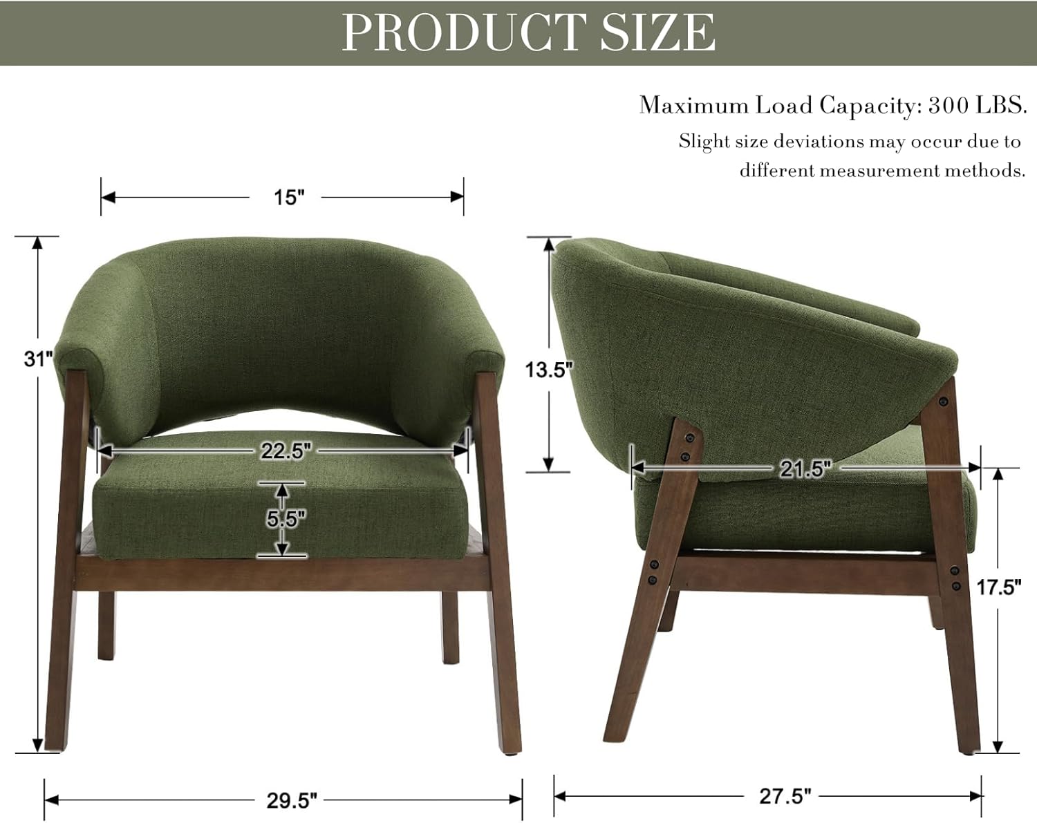 - [Stylish & Breathable Fabric -Sit Pretty, Stay Cool]-Wrapped in a soft, breathable linen-blend fabric, this chair feels as good as it looks. The deep green pairs beautifully with the walnut wood legs, adding a fresh pop of color to any room.
