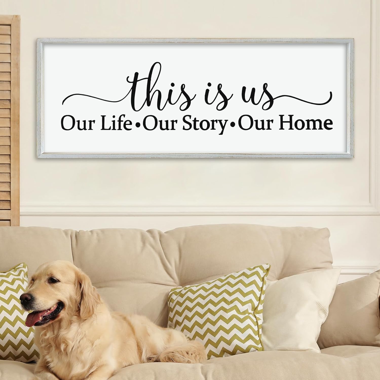 LuZhiQiang This Is Us Sign Wall Decor 40"×15" for Bedroom Family Sign Large Framed Wooden Wall Hanging Art (White)