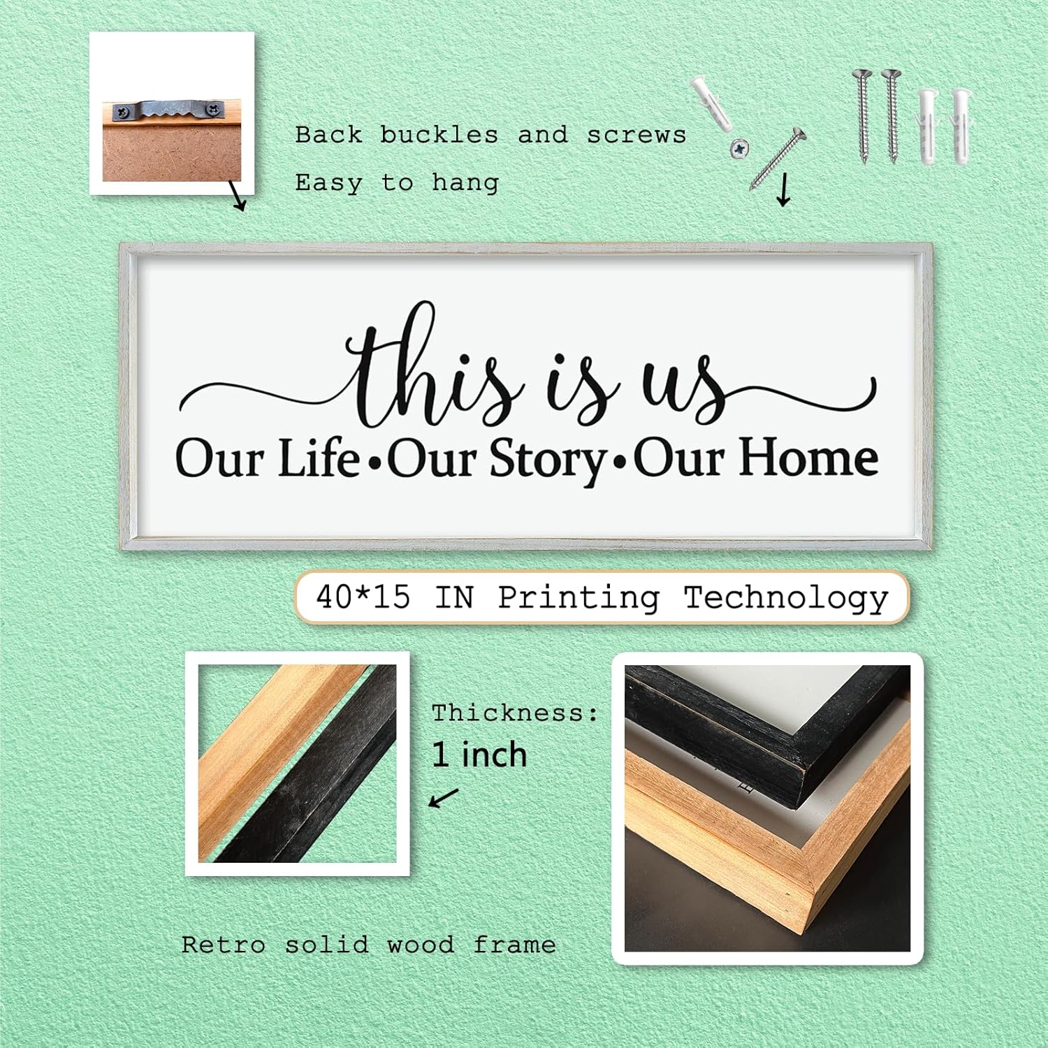 - SIZE INFORMATION: Each meticulously crafted sign measures approximately 40 inches in length, 15 inches in width, and 1 inches in thickness, weighing just 2.86 lbs. With its sleek and elegant design, it effortlessly enhances the background wall space you wish to highlight.