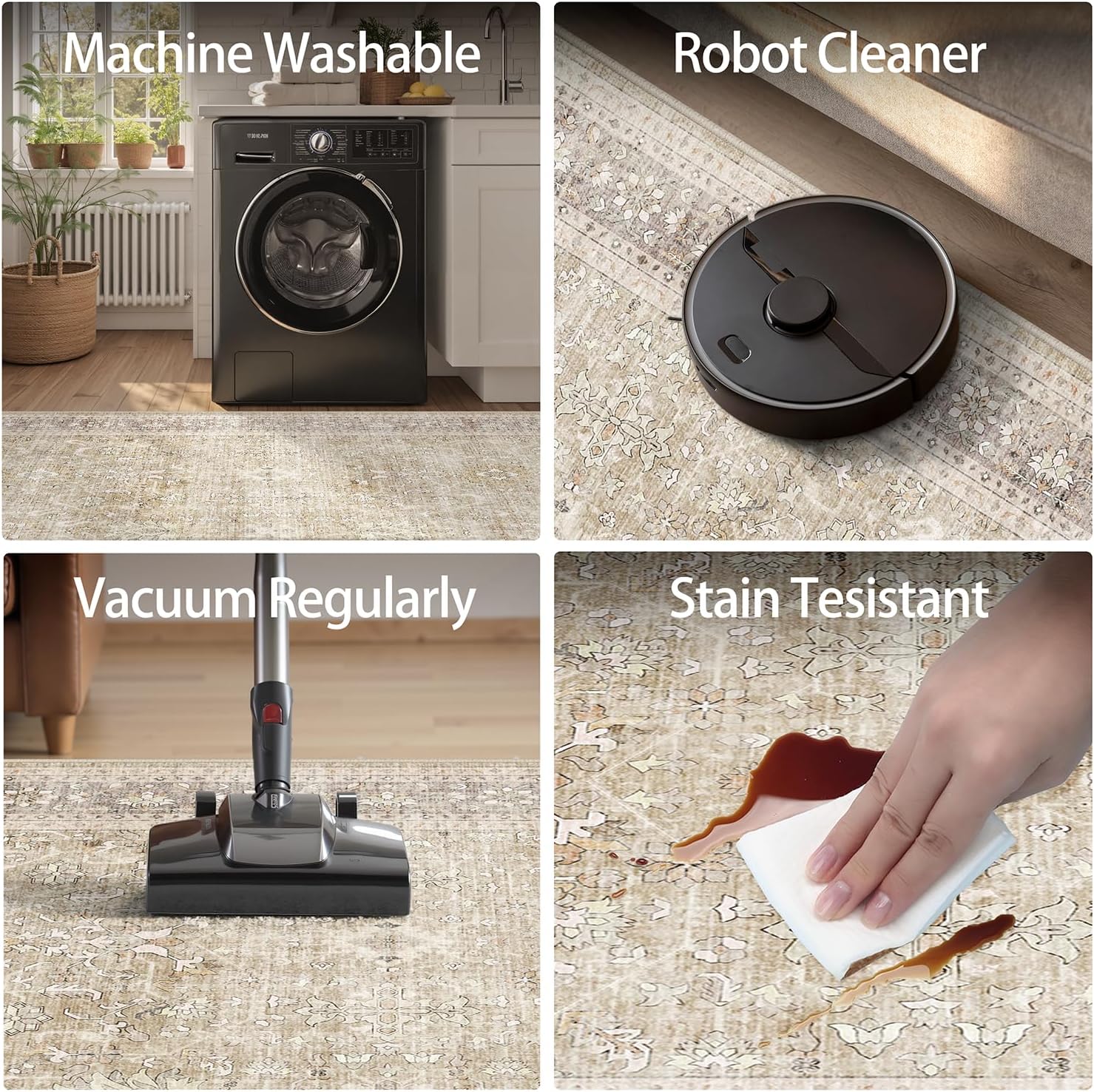 - 【Ultimate Kids & Pets Area Rug Defense】Vintage neutral beige rugs for living room low-pile 1/4" thickness actively resists pet hair, dander, and spills—stains wipe away instantly. gentle on paws/claws, low pile 5x7 beige area rug for living room prevents chewing damage and floor scratches, making it the ideal kids & pets friendly neutral area rug.