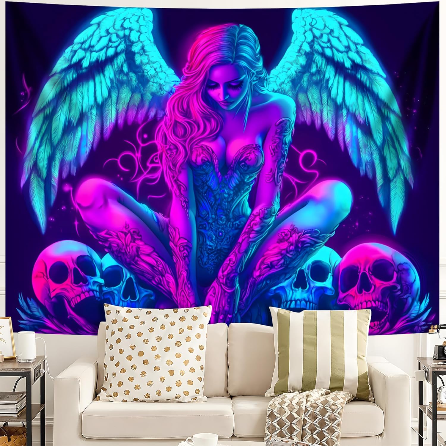 Blacklight Tapestry,WingTapestry Glow In The Dark,UV Reactive Black Light Upright Posters Wall Hanging for Bedroom Dorm Living Room Backdrop Decor (wing15, 59L" x 51W")