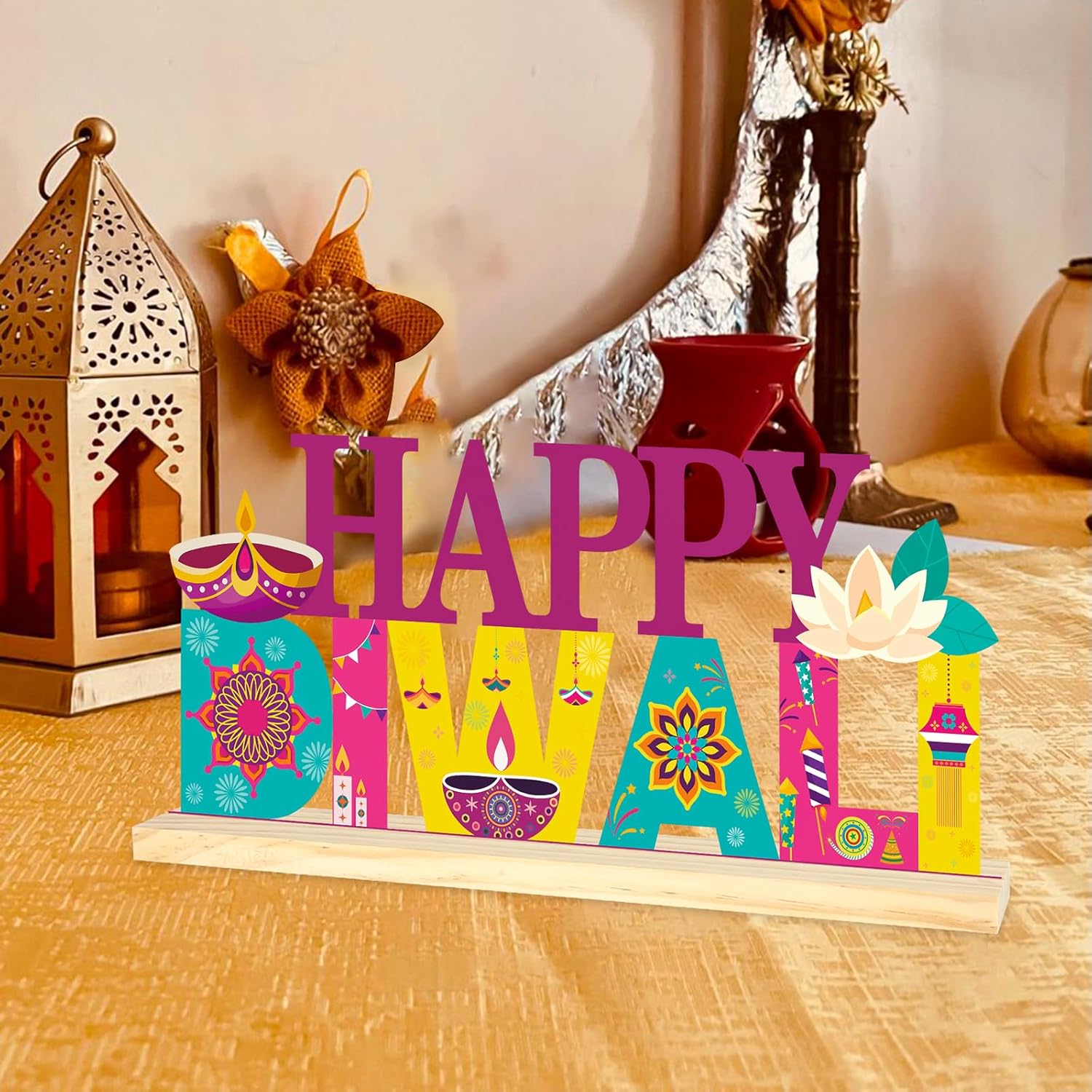 - Great Holiday Gift - The chic and cute appearance makes this Happy Diwali table sign a great gift choice for your family, friends, relatives, and others. This chic Diwali decoration can be used in the home, living room, bedroom, kitchen, fireplace, tabletop, office, cafe, business center, and hotel.