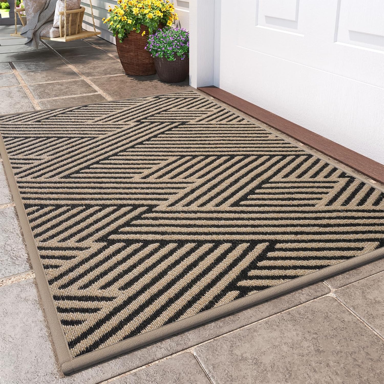 Front Door Mat Outside Entrance, Non Slip Rubber Backing, Trap Dirt and Moisture, Easy Clean Low Profile Welcome Floor Mats for Patio Porch Indoor Outdoor Entry Mat, 31x47 Inch, Brown