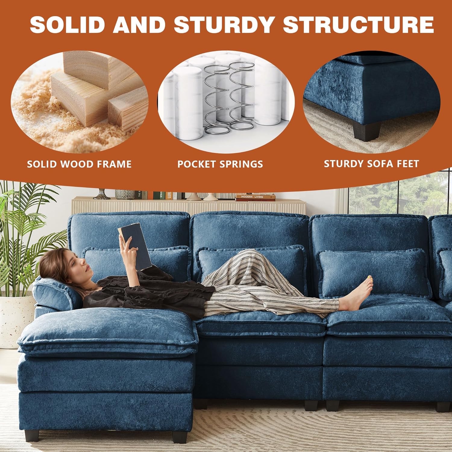 - 2 Layer Cushion: Featuring 10 inch double-layered, thickened cushions, 4-seater sofa with double cushions offer a cloud-like softness combined with firm support. The spacious U-shaped layout provides ample seating, perfect for gatherings.All cushions are shipped in vacuum packaging, please wait for a period of time to fill up